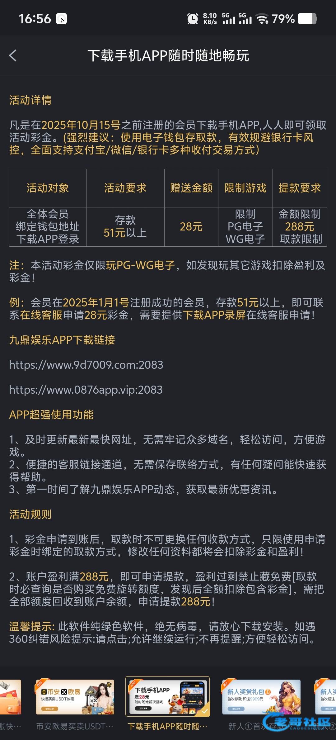 鸡扒的老用户回归,不就是下载APP彩金吗,这玩意只能领一次