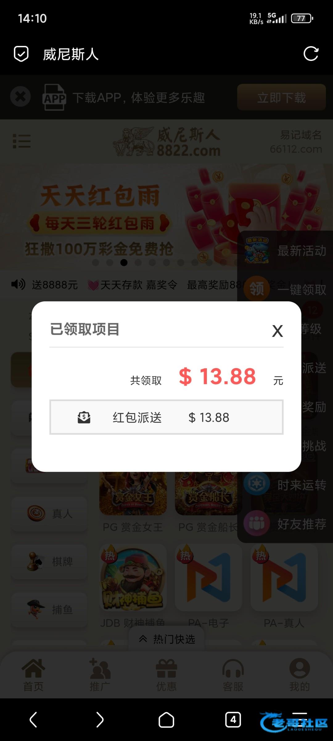 不知道什么彩金送8块,国庆充值过100提了300,8块彩金又吃100,各位老哥嘴下留情,骂人就反弹,8822.com