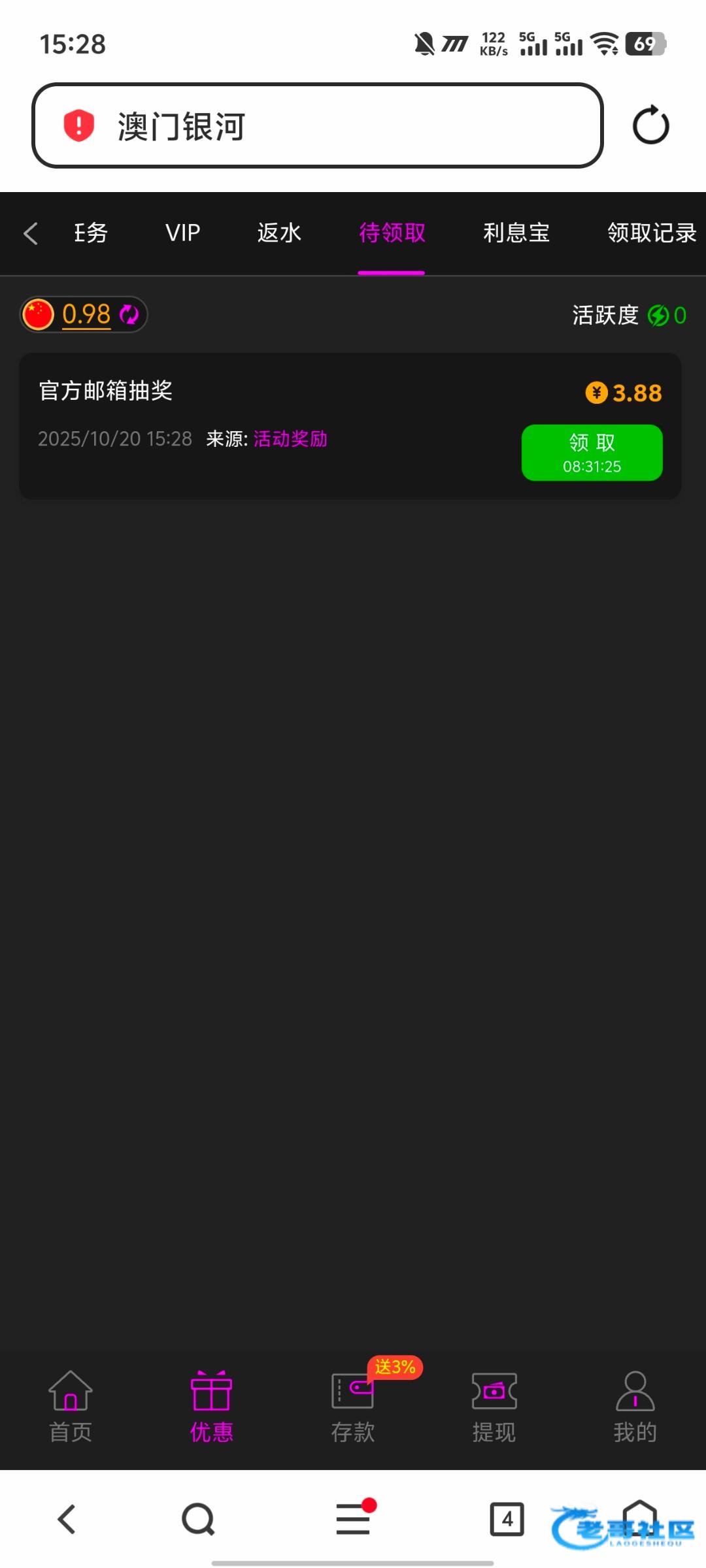 这是黑台啊我前面一直正常充值玩到v3 给提现了两次 后面充值提现一直罚水 充值500打了3000流水还说低流水 给输完才行 然后我又充值了200打上了1500提现又罚水 后面就不玩这个台了 别充值提醒你们