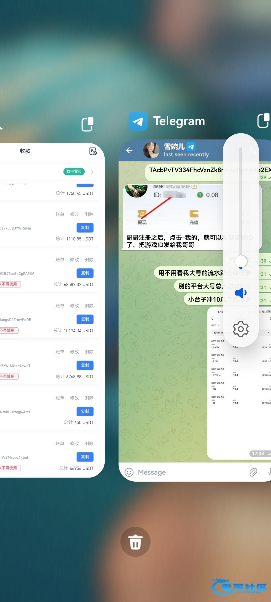 给他的地址总收款6.8万 u,最近一个月流水2万多u,又给他一个流水5000多u的
