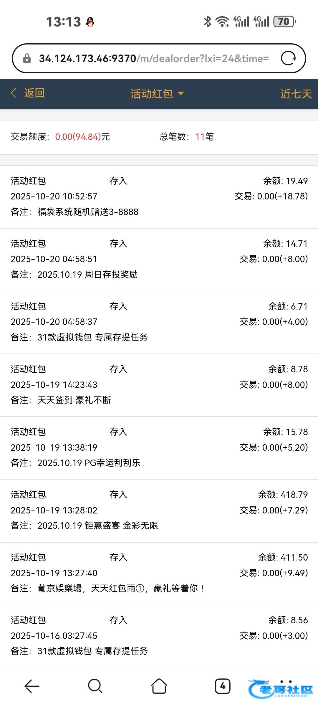 这个畜生台玩套路的 8毛麻将连续调了40多次负利一次一千5到2千 8毛麻将输了几万元钱 后面不见来了经常给彩金陆陆续续赢了600元 一存款200元的8毛玩麻将 存款了30次200元全被畜生吃完 给你赢多少都有记录 翻倍装回去 不装回去都弄得你赢不了