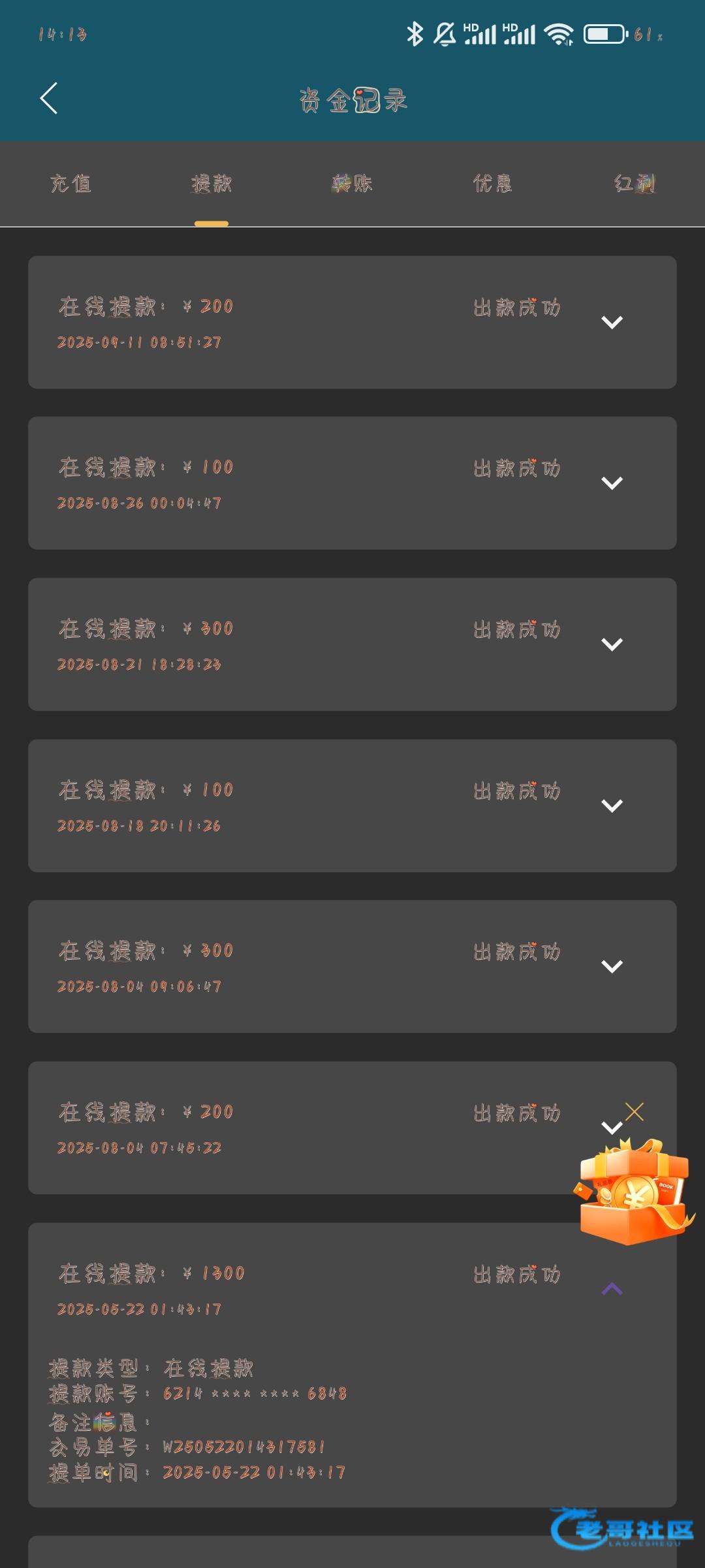 前几天送过188出600,第二个号多账号不给了