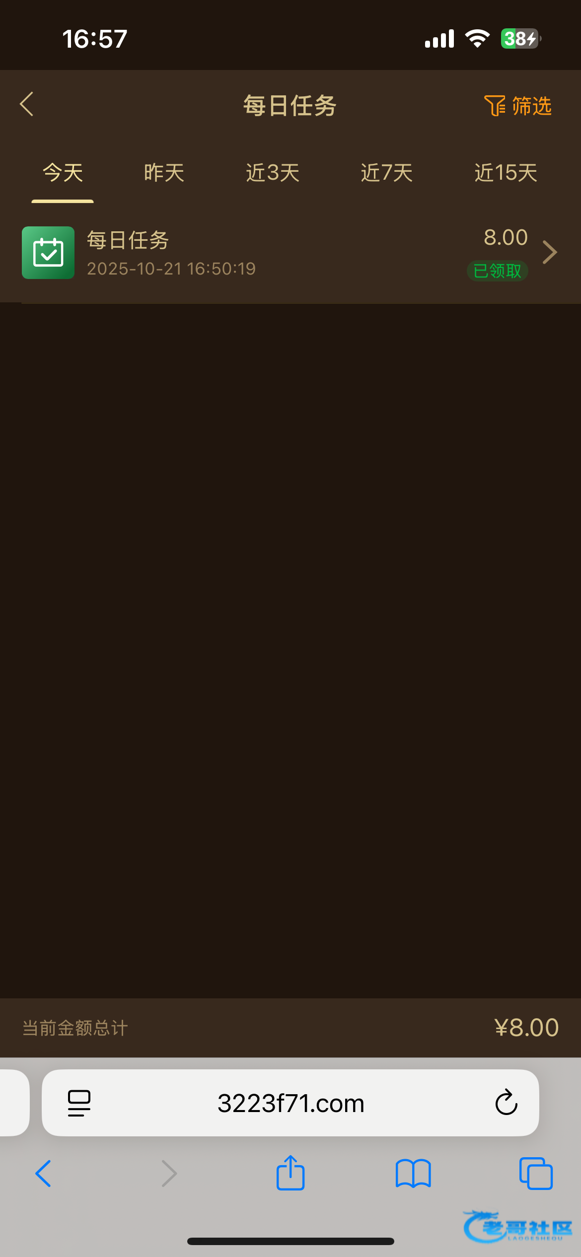 之前有老哥发过现在又可以领,每日任务里面完善信息送8 网址3223.com
