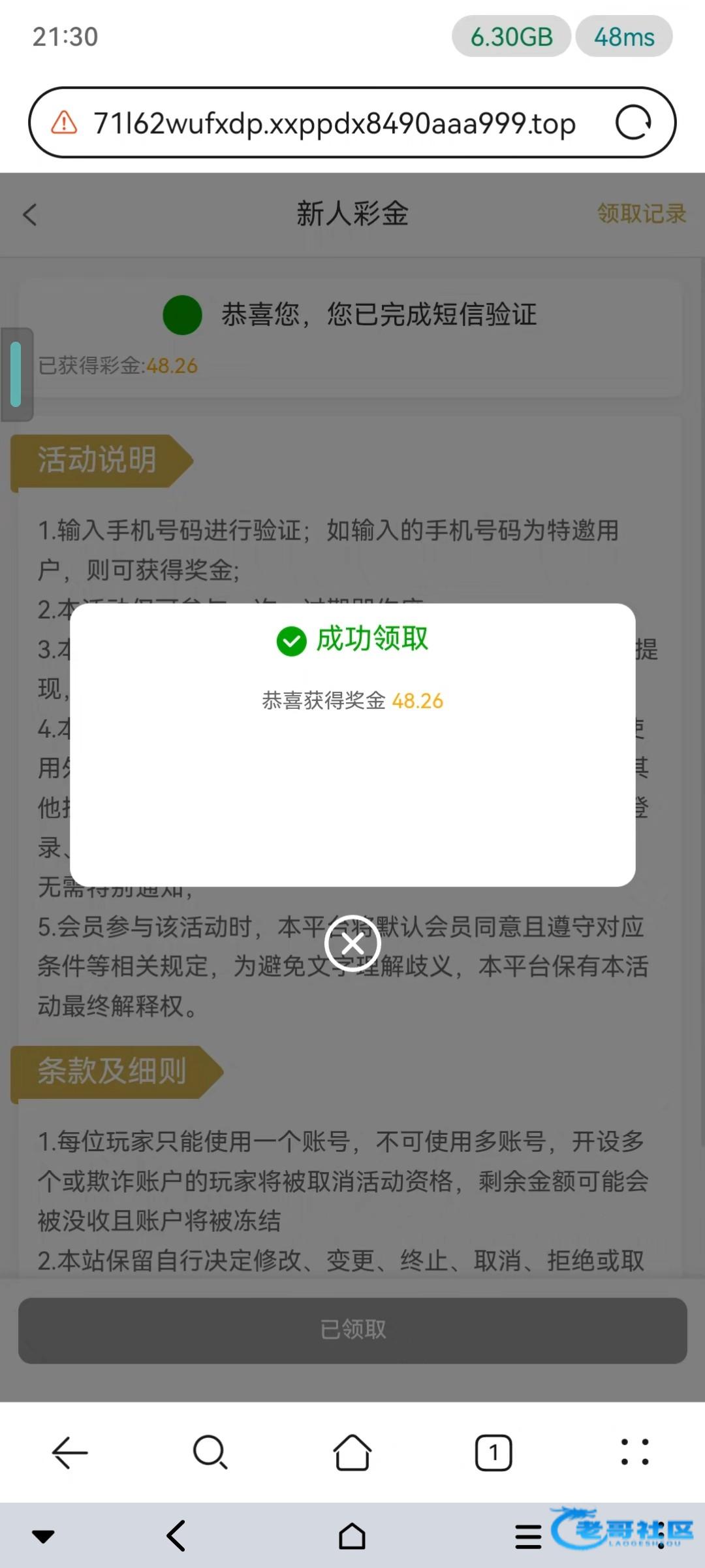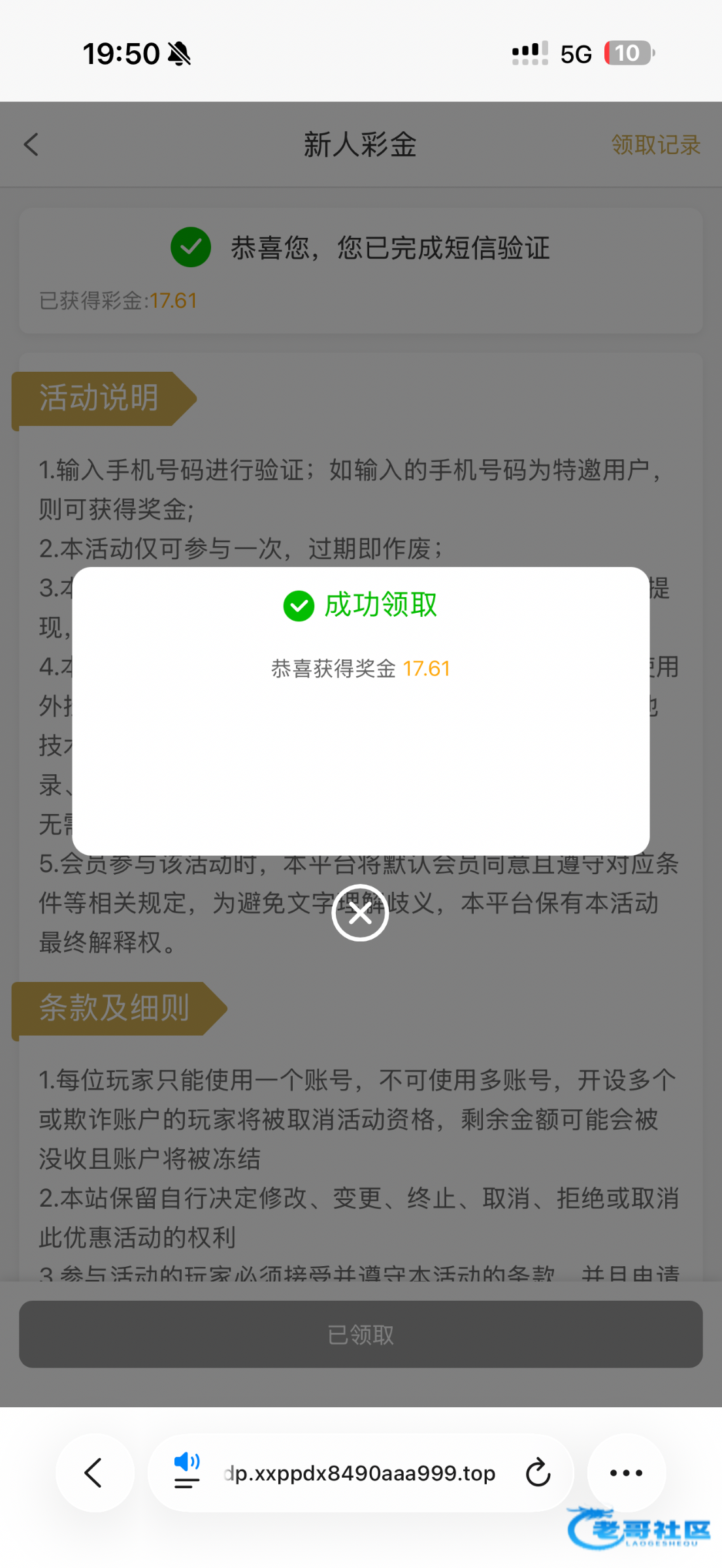 这个帖子牛逼,随便注册了个账号就送了,手机号都没来得及绑定