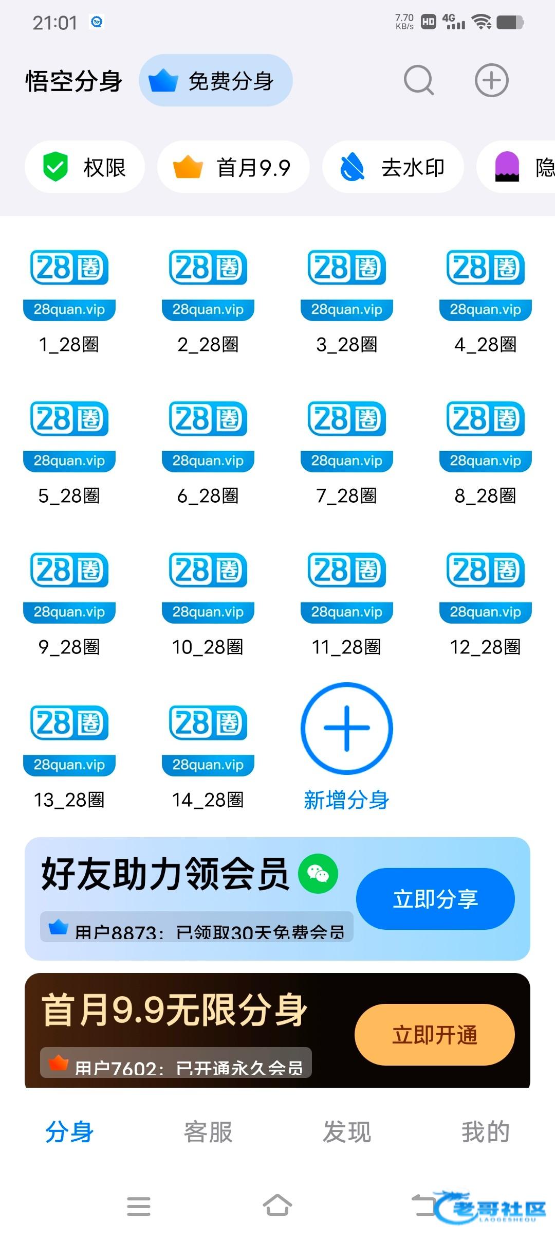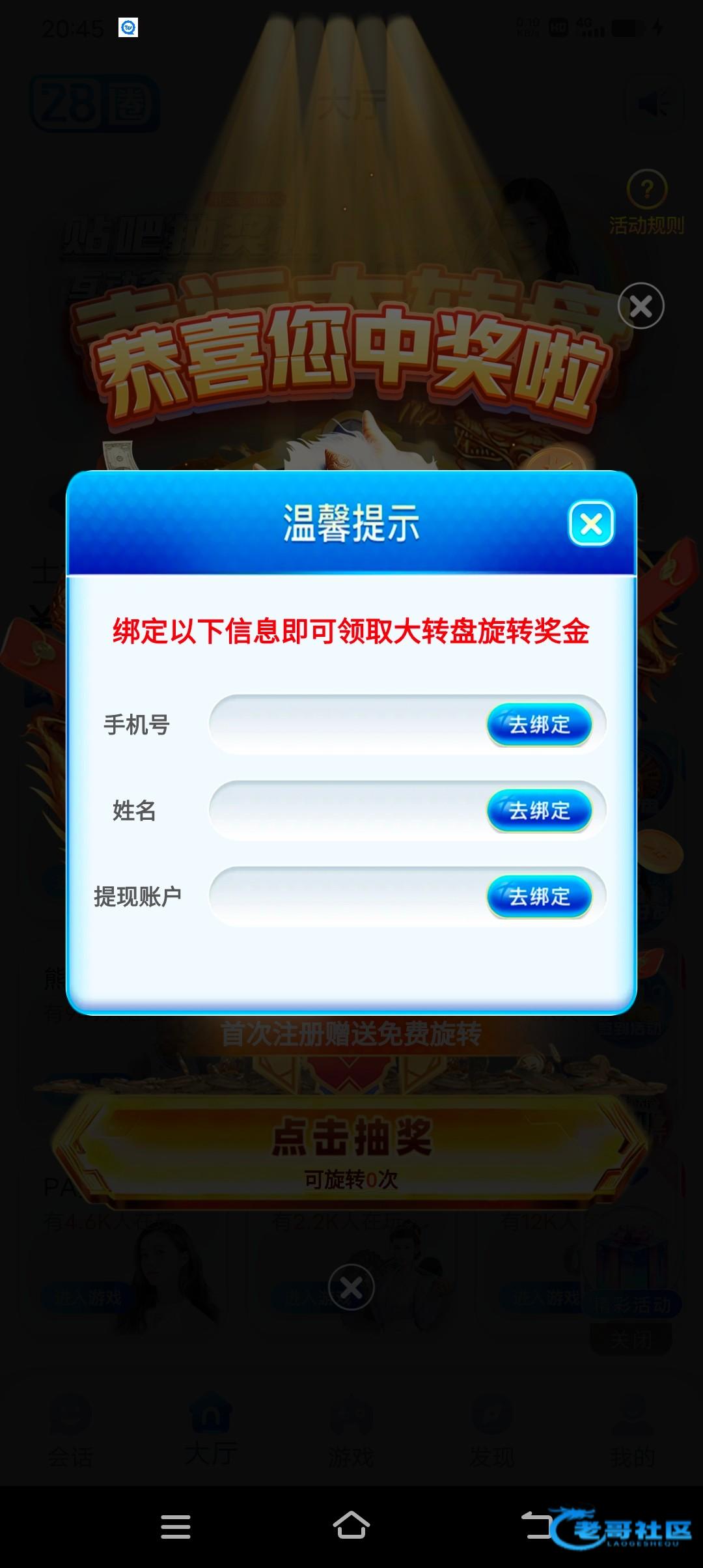 这个28圈查ip查设备,首先下载一个悟空分身,然后关闭流量换ip,然后选择悟空分身多开就可以了,直到抽到18彩金填写资料就可以了银行卡多的可以接码