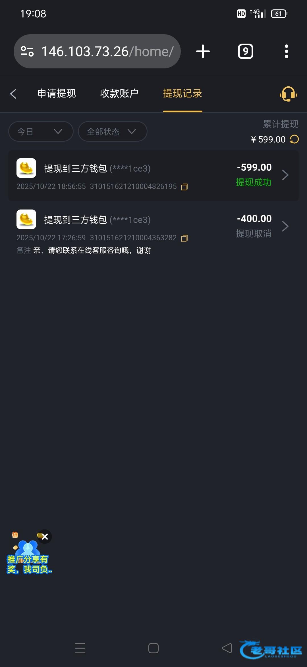 我冲150提900都不到账无线审核,然后又打到3700无限审核,输到800也是审核。