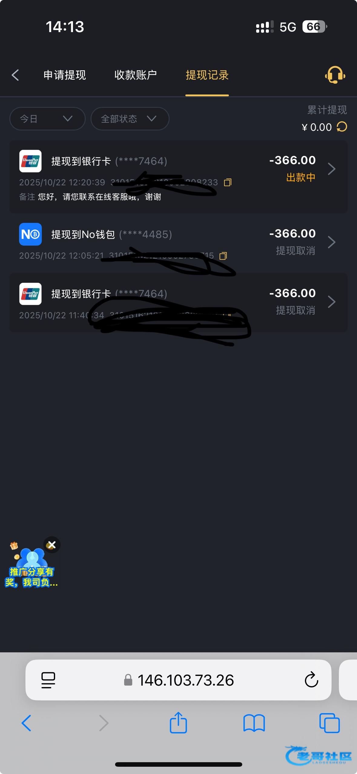 提现两个小时了还没到。问就是在审核。垃圾黑平台