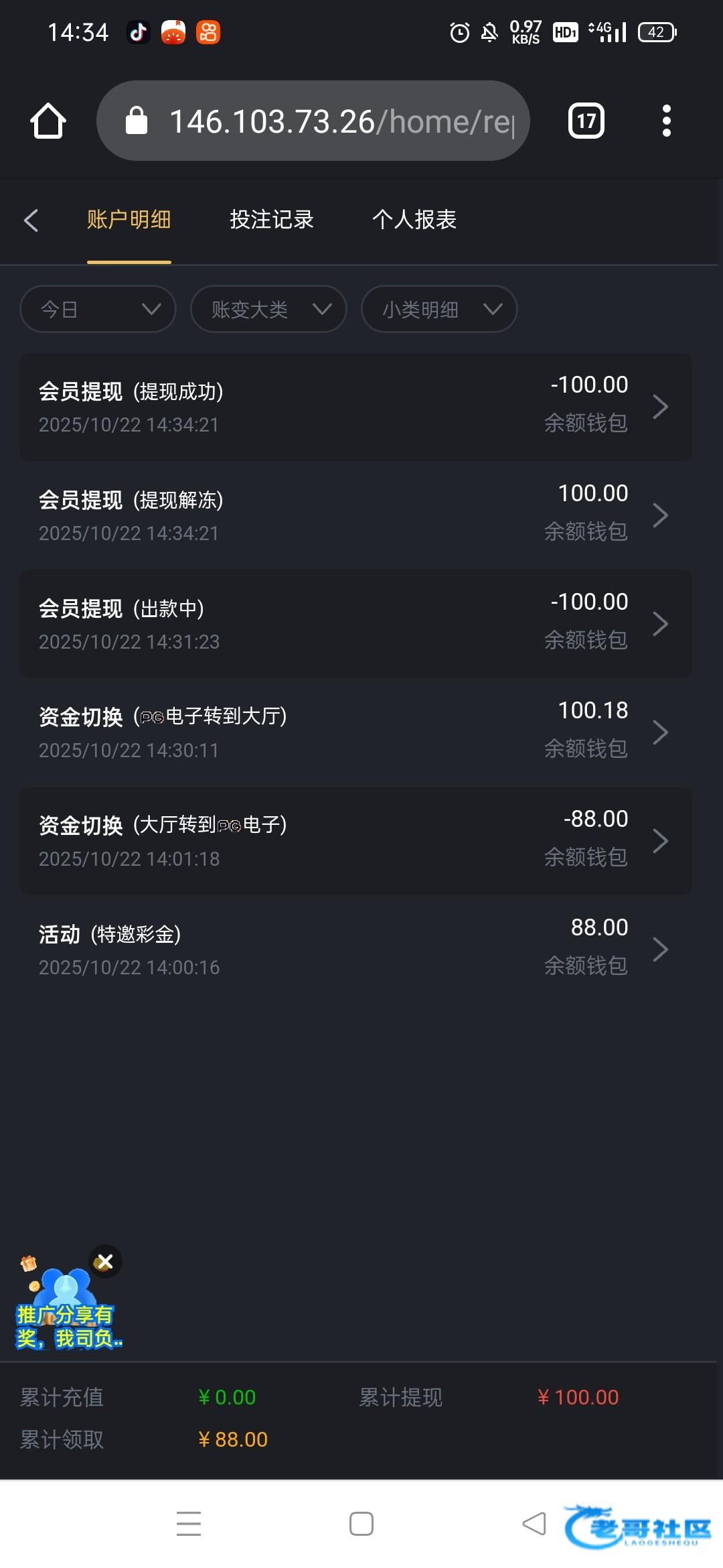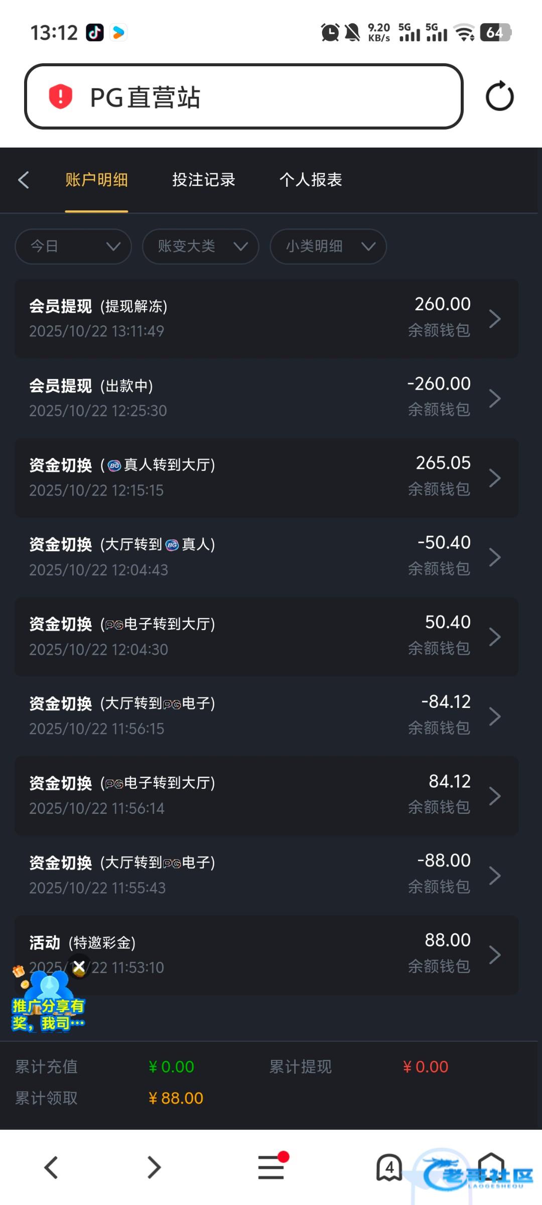 给了88,电子没水,真人第二关挂了,建议到50就去真人