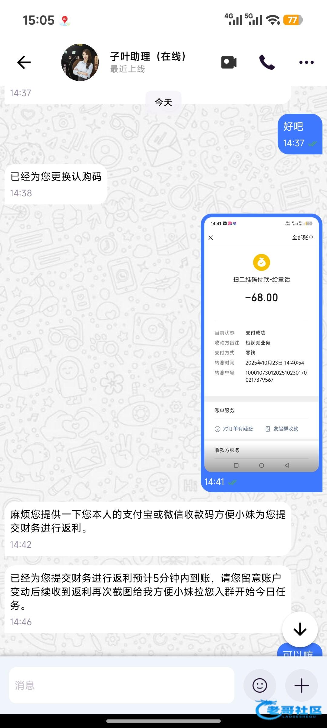 这种别想着会反从一开始就是套路,我p图试到过第3步一直叫你转钱的,一分都不反的