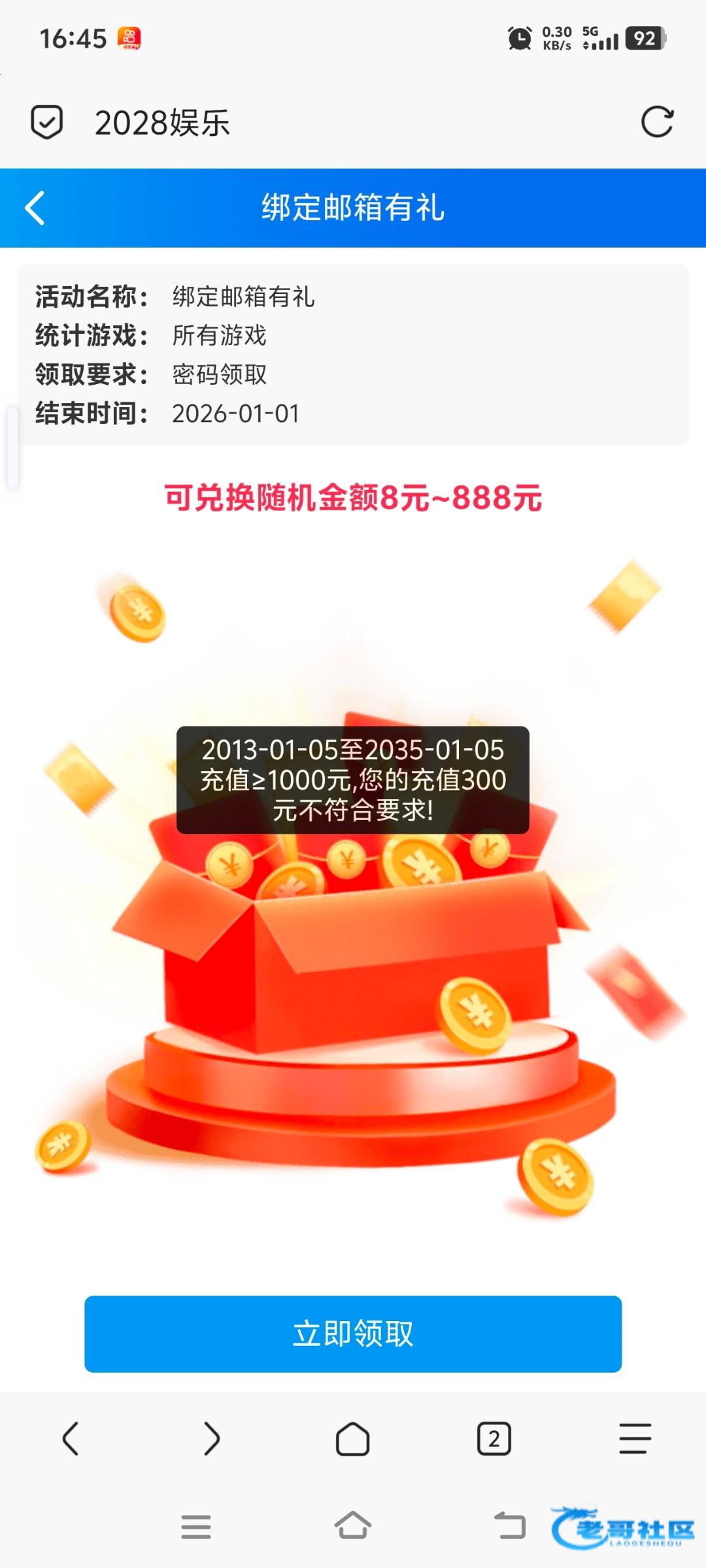 看到别人发邮箱彩金,想去碰瓷,结果没注册过,看到有活动就去试了下,以为会多IP拒绝,没想到送了,只能娱乐彩票一水138提,没事的可以去碰下,嘴炮就算了,免得又一顿喷链接2028aa.com