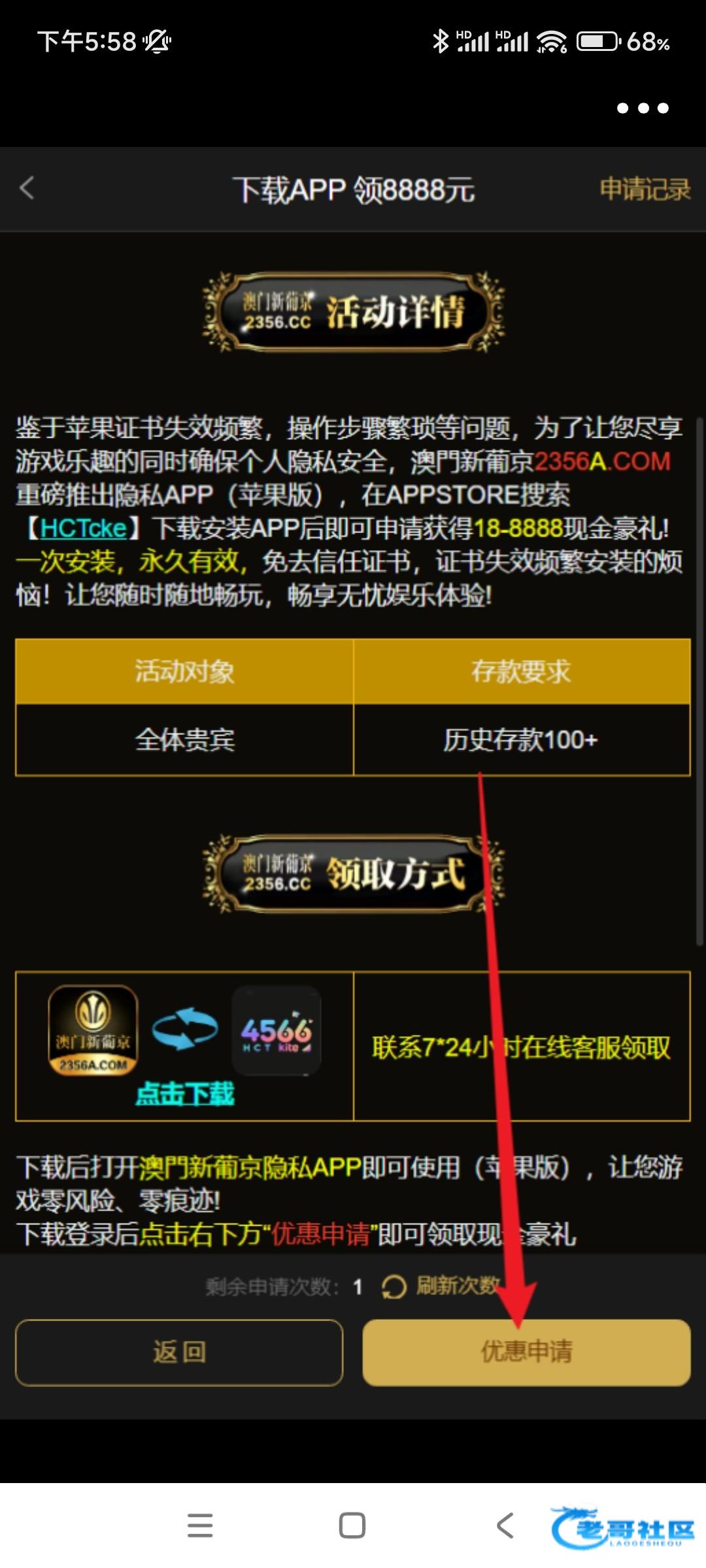 充值过100的去下载app申请,然后找客服秒给