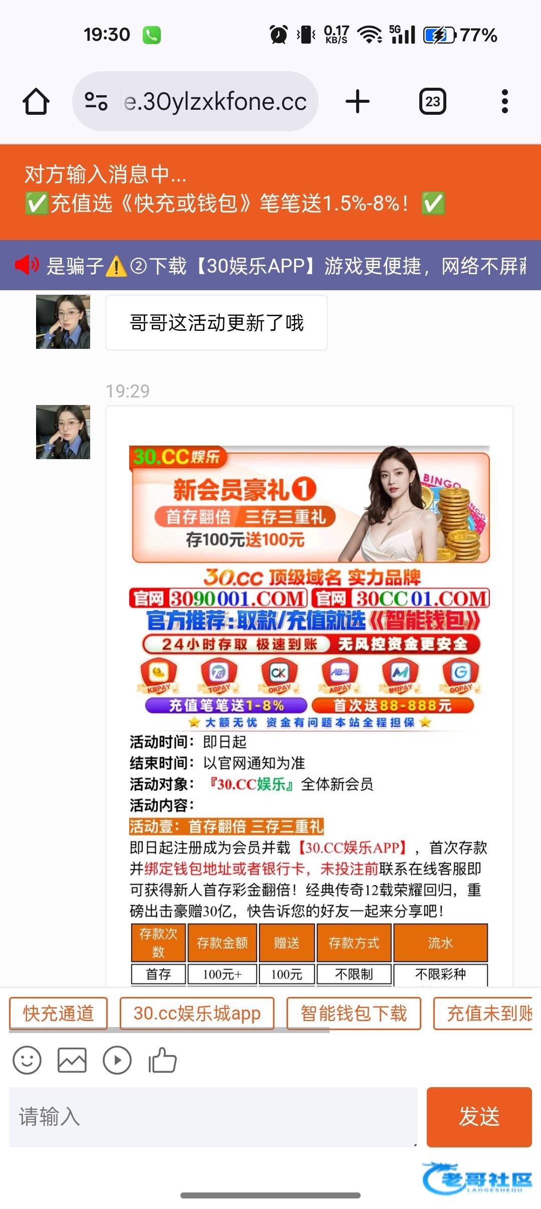 链接:30cc01.com 30.cc此平台撸撸彩金就行 禁止充值 黑了自己承担,实测最低充值通道是u可以充10块,支付宝最低充30,第一次充一块送68,第二次钱包充100送88,还有次100送88,充值前找客服确认一下