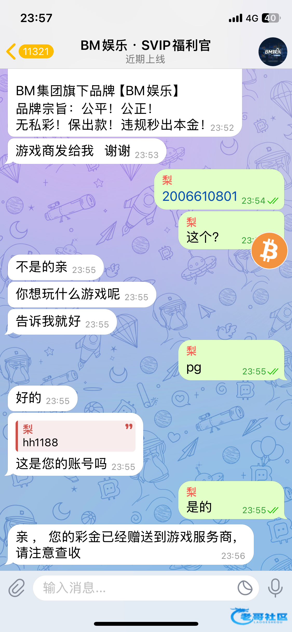 laichenchen002 ▶ 反反复复 人家查呢 看交易不正常也不给 3月前