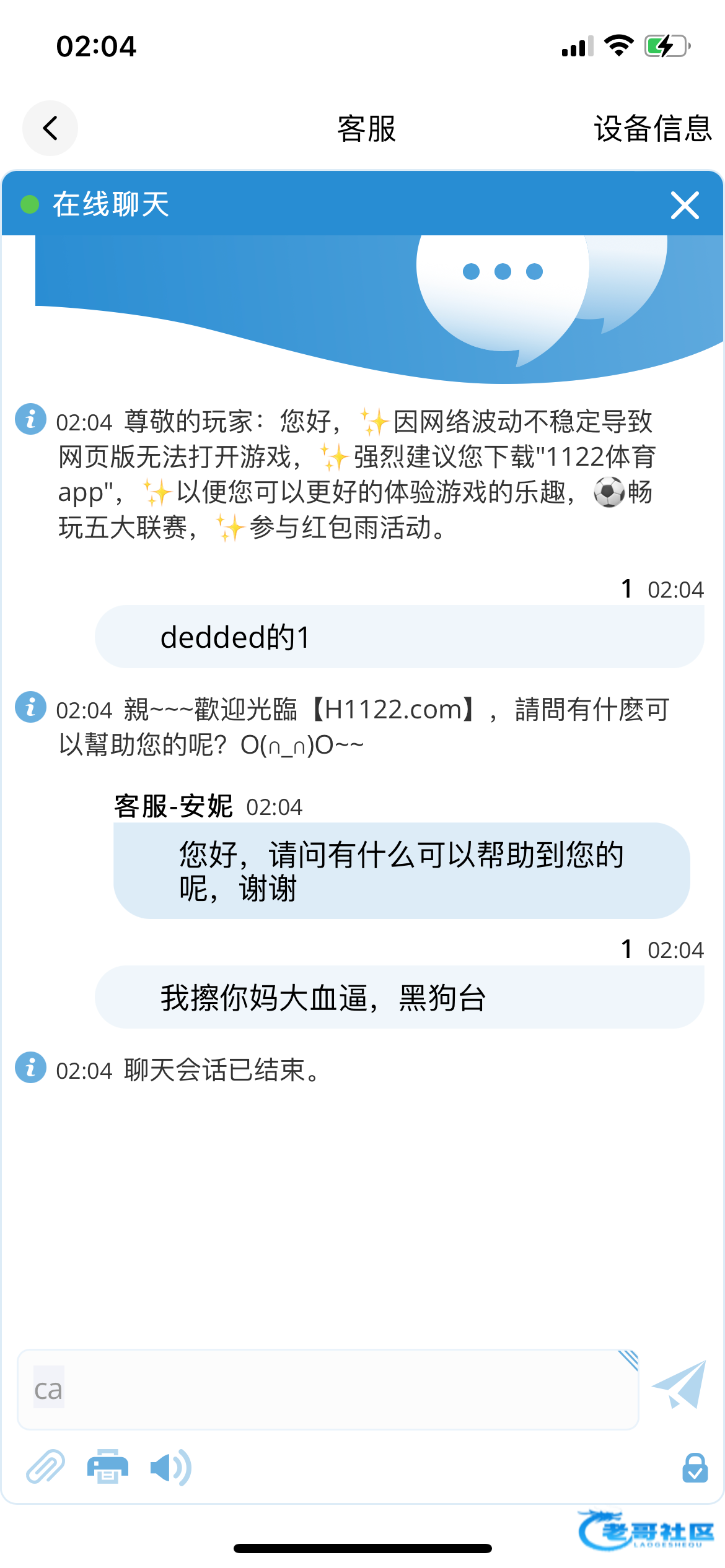 1122体育这个黑狗台最近又开始打电话了,注意了,存送,擦他妈提款什么都不支持,只能24钱包,论坛一堆人说黑的我没注意,真累了。老哥们千万别存,真的存进去当欢乐豆玩