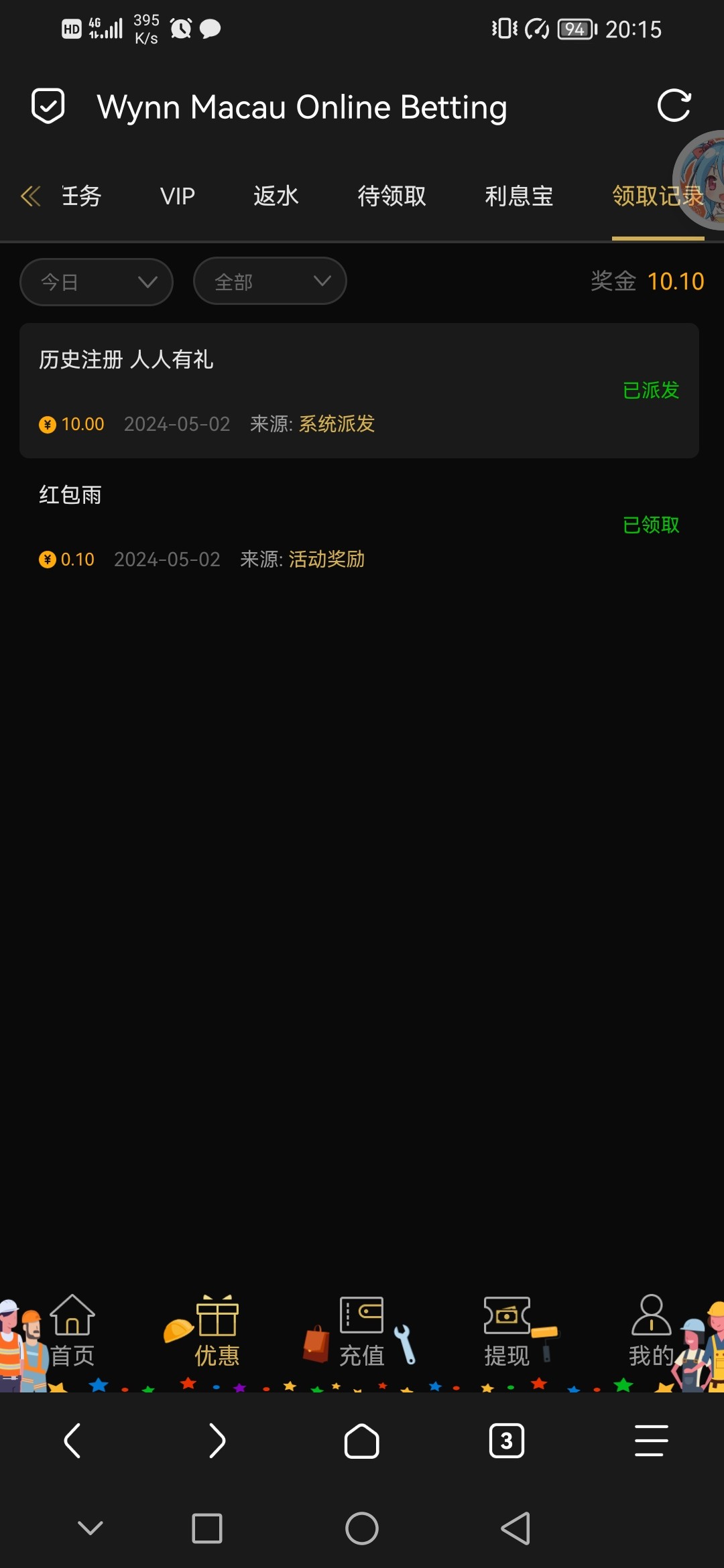 领了10块出款180稳稳的