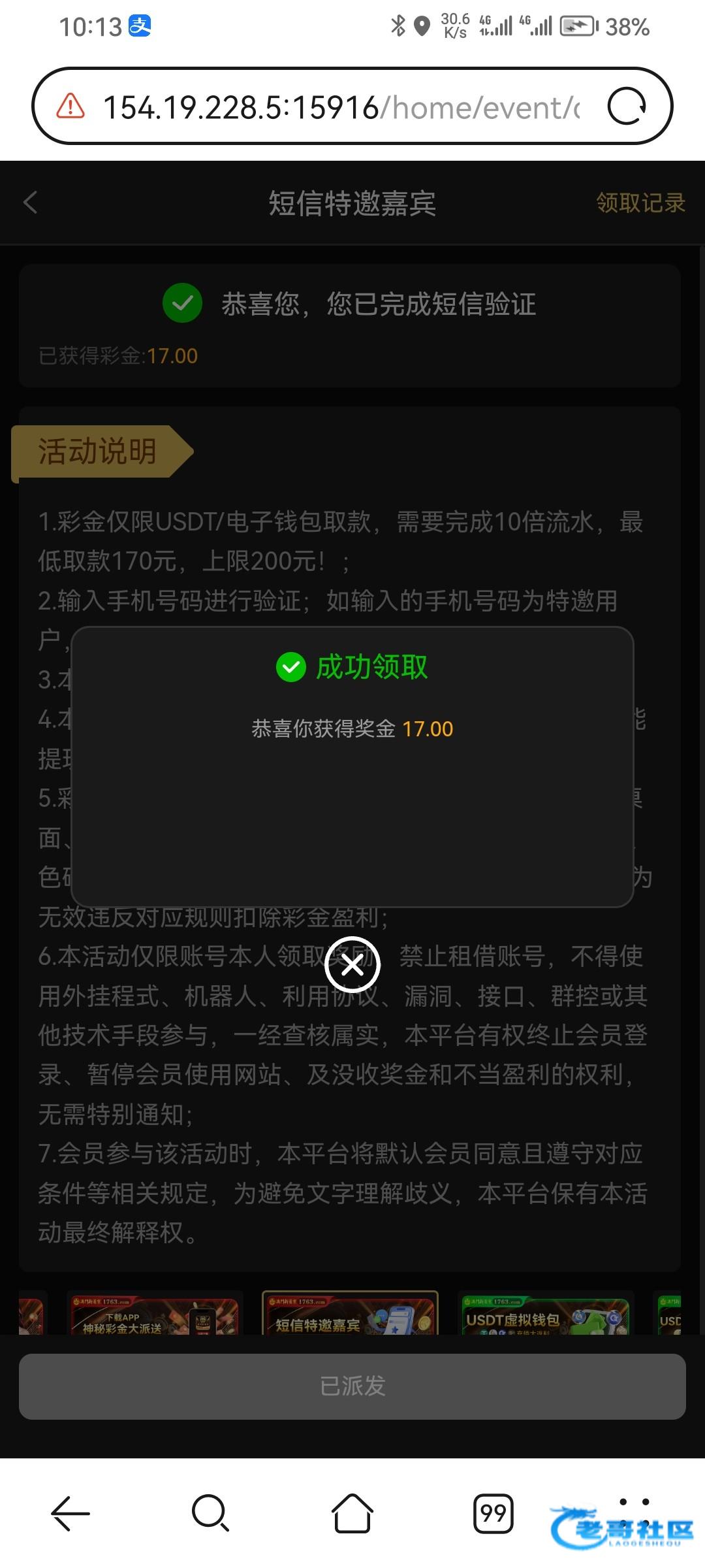 网址1763.com 前面的号封优惠注册新的领到了 没打出来不知道多账号能不能出款 查特邀需要绑定收款方 觉得麻烦的老哥就别去了