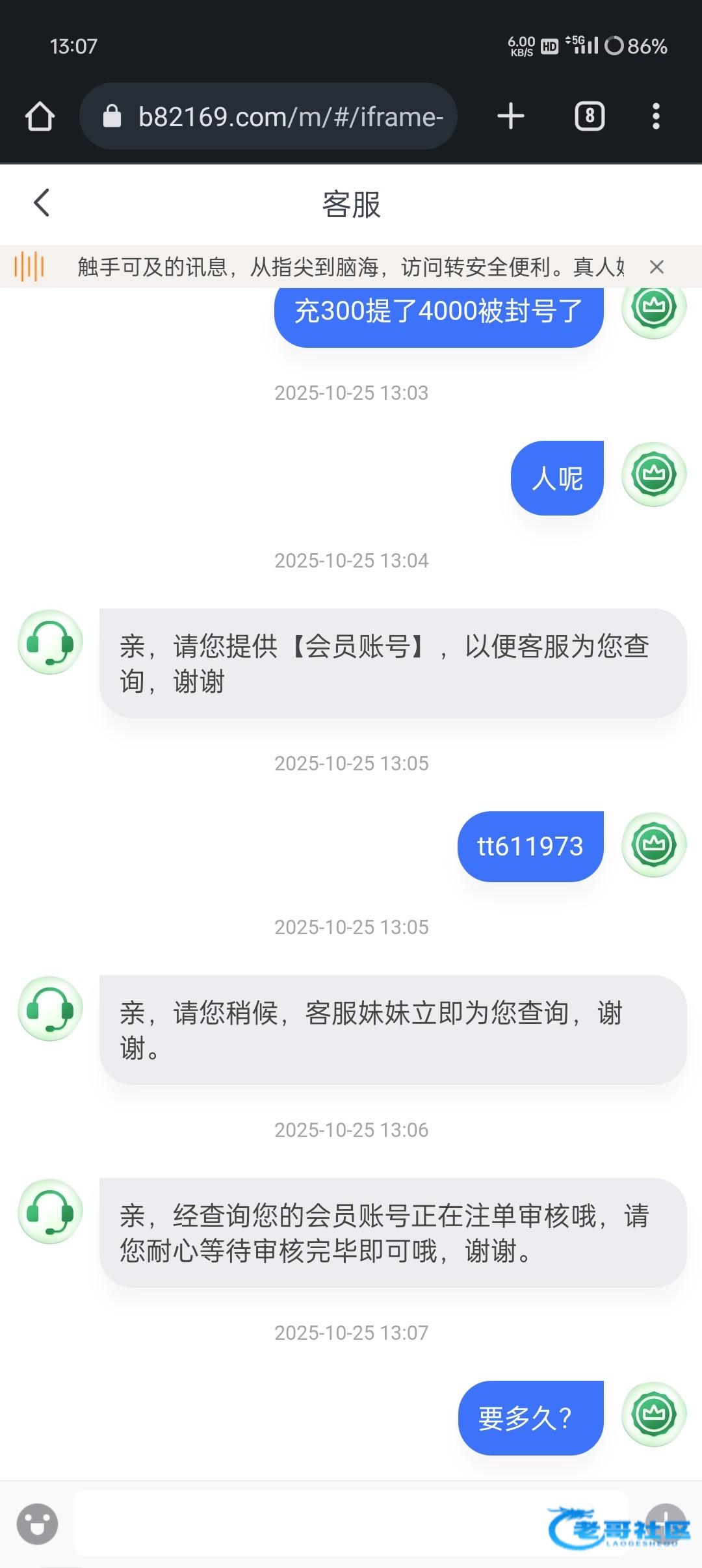 昨天充值300提4000然后就给出了一千,就被封号了,这个台子就是送388那个台子,老哥们避雷,搞不懂之前输了不少在里面,现在提个几千就黑,本来不想曝光的,妈的越想越气,充值玩的注意吧