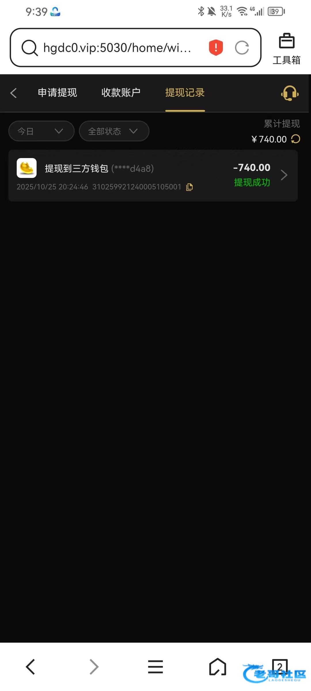 多谢老哥论坛,收到奖金了,希望能打出来,谢谢老哥论坛!祝贺论坛长虹!