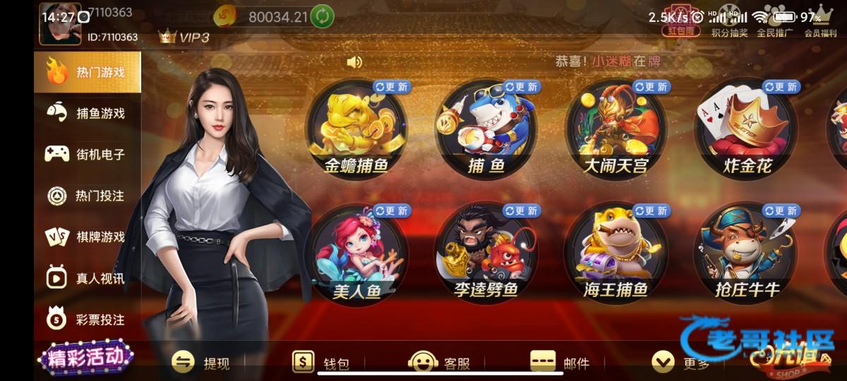 估计是电话来免费送的彩金 刚开始赢了几百 提现让充值同等 一直没充 然后余额越打越多 你一个免费彩金打到8万多能给你出就有鬼了 虽然话难听但是这是事实 狗庄不是做慈善 你打个几百还有可能出 8万不可能了
