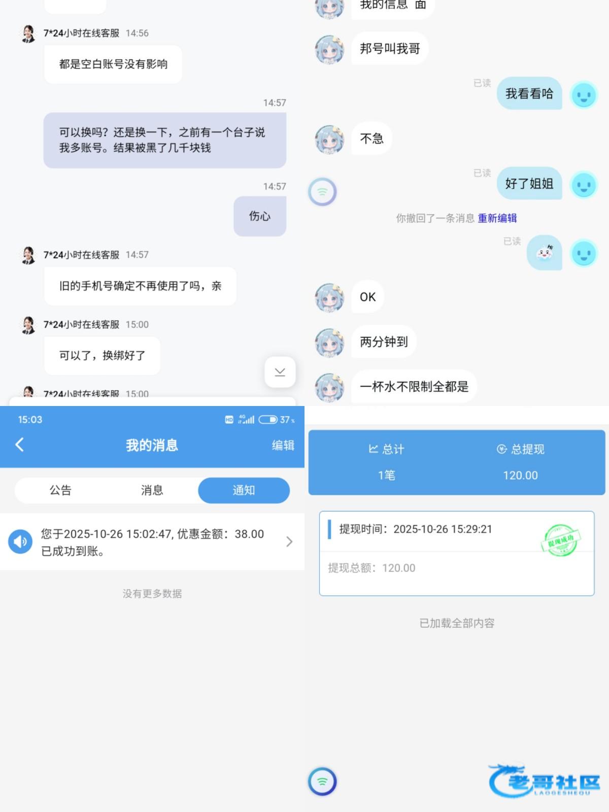 最近488一直打电话因为我以前领过88,以为领不了了结果忽悠客服换手机号又领了一次提现秒到 老哥们可以去试试,63039.com