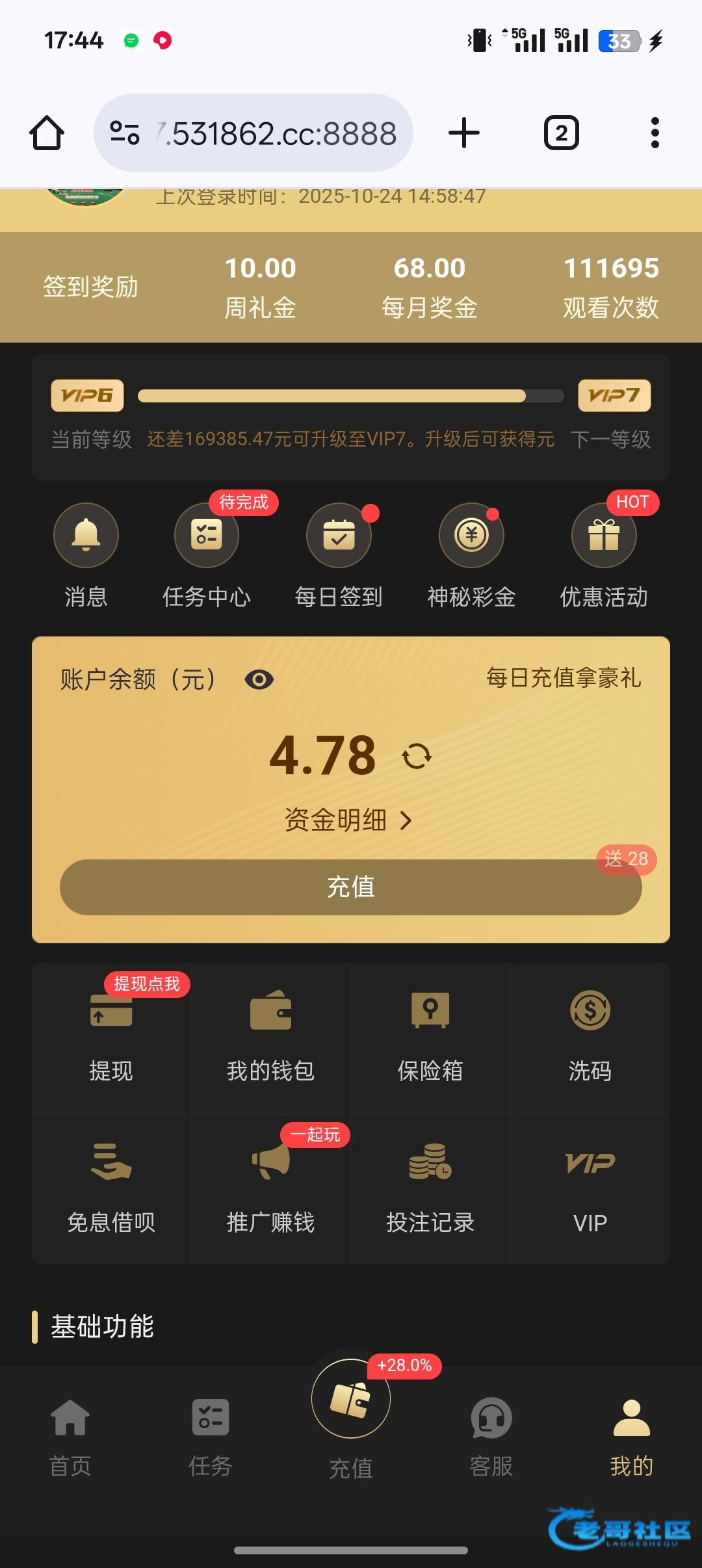 我也来一次闲着无聊登上去送了88,我充值过几千块,老哥推广的稳台908.net
