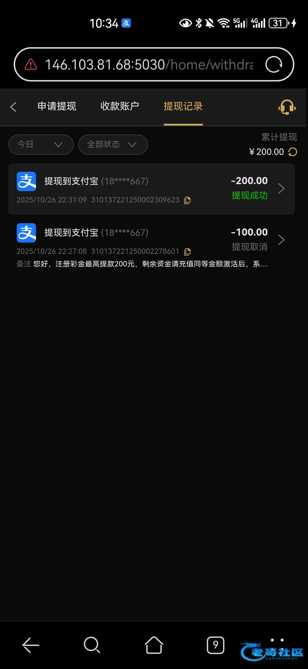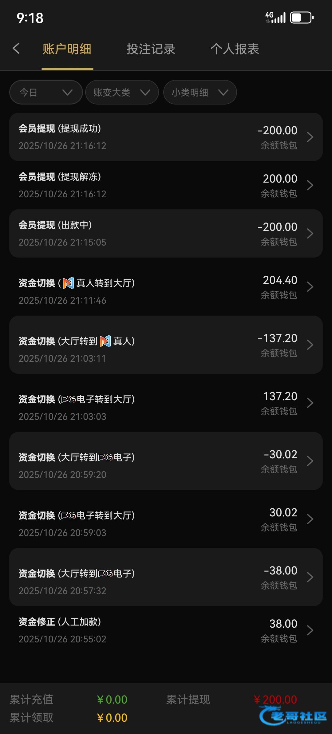 打到500多,提了200还没到账,剩余的给我扣除了,还想冲对等完了打一下呢,都没到账