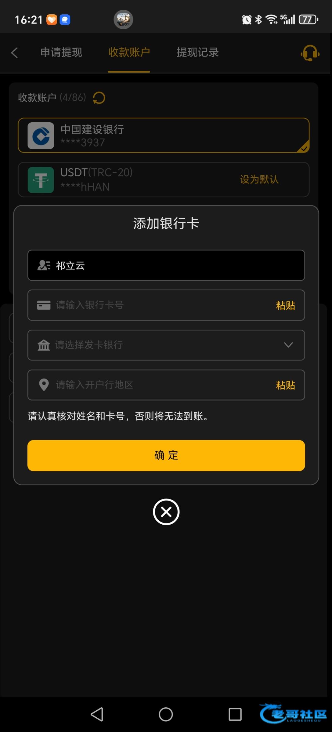 抢了1.3的红包冲了10打出来100登录上去发现名字不是自己的提现的u到了