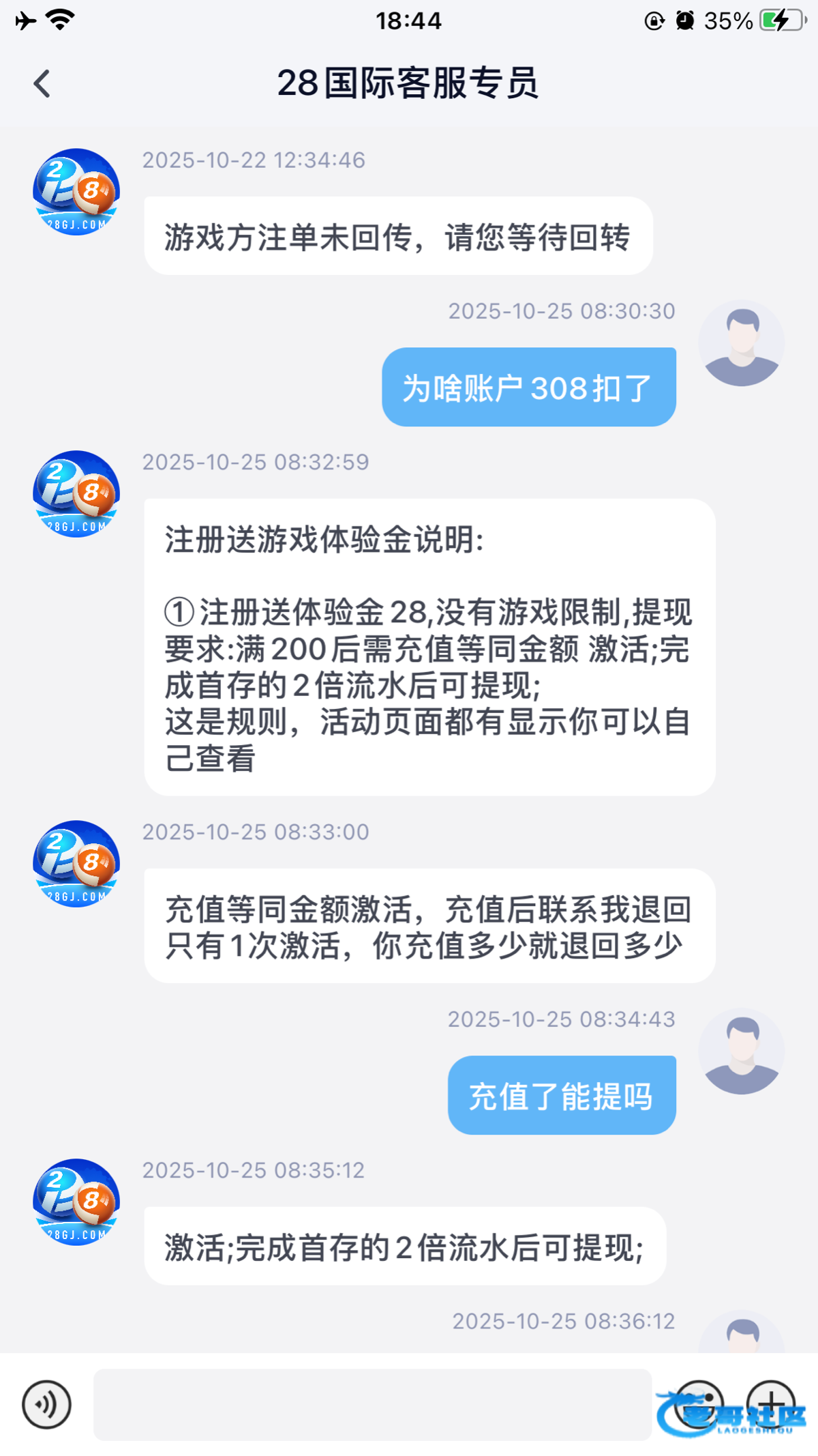 注册送28打到300,扣除了需要充值同等金额,充多少退多少,打两杯水,有没有兄弟玩过的,能出吗?