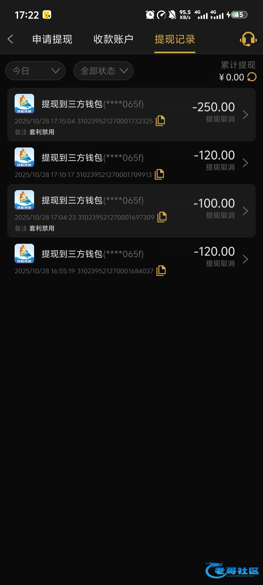 提现一个小时,莫名其妙取消了