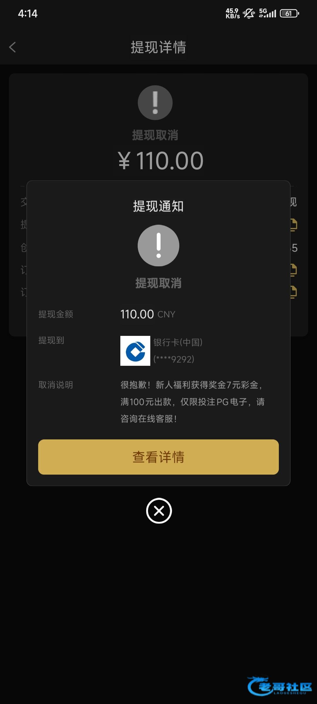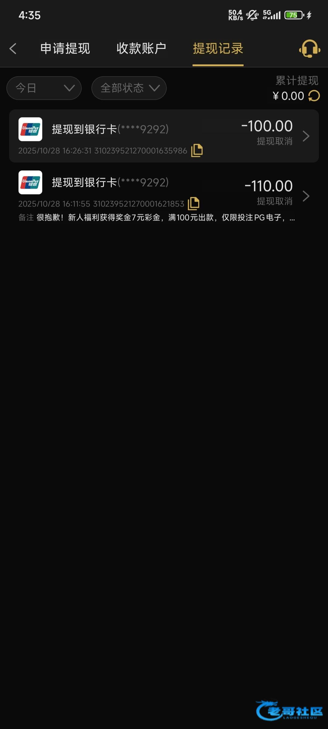 第一次提110被取消了 问了客服说让重新提交 提100又踏马被取消了