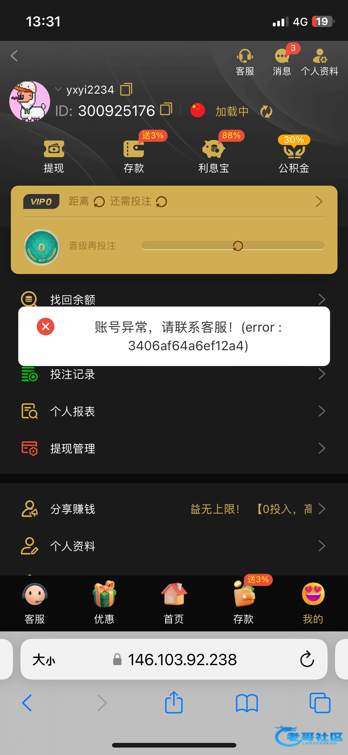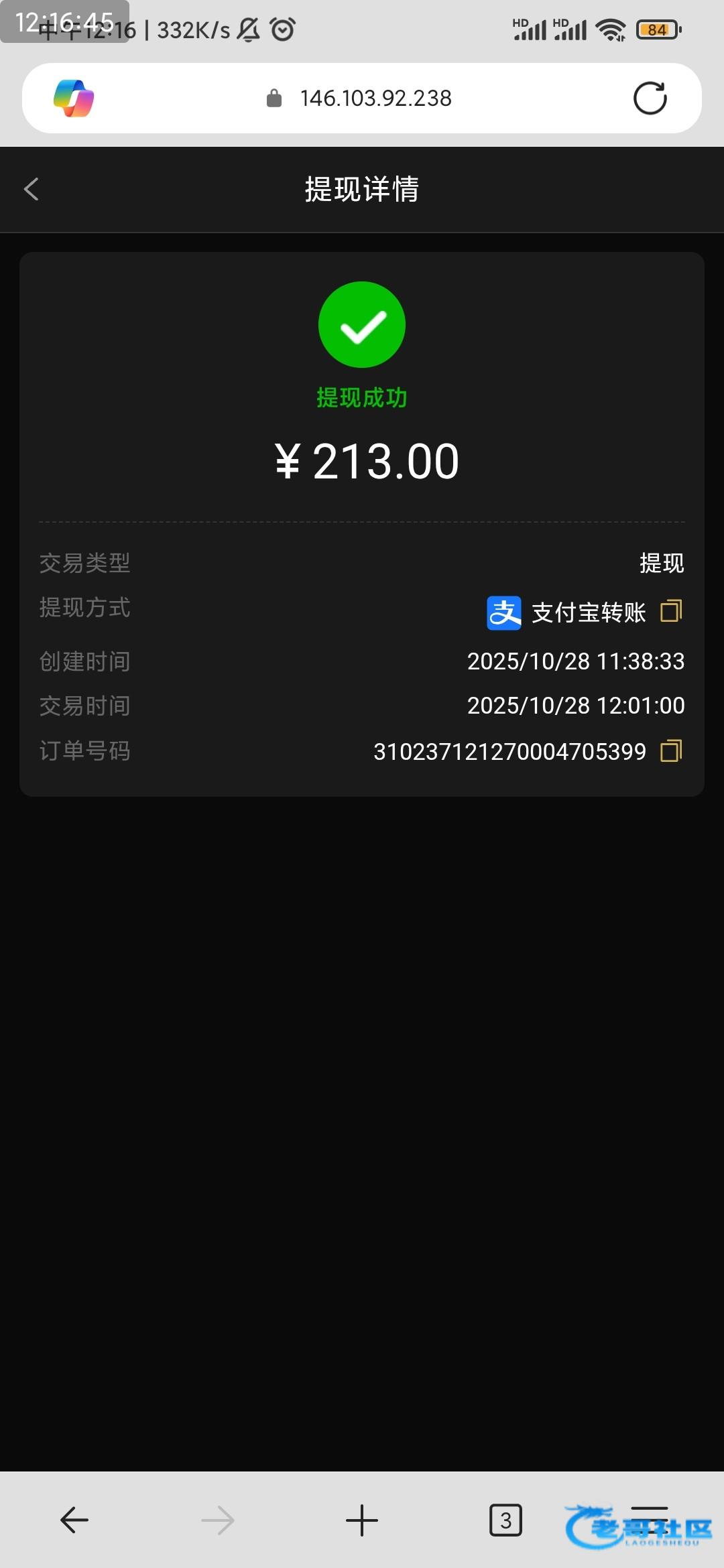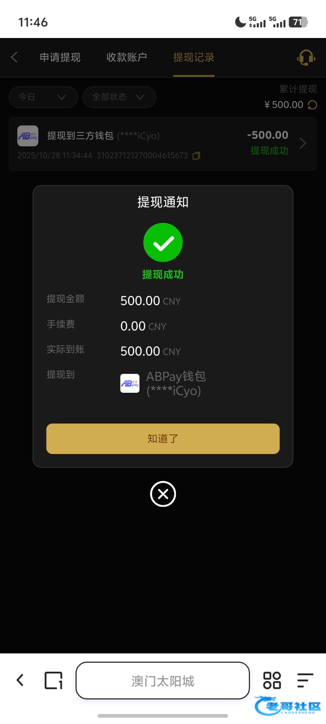 我靠牛逼,这个台子我注册第五个号打出来了,提500居然到账了,我IP都没有换,助力老哥有效帖