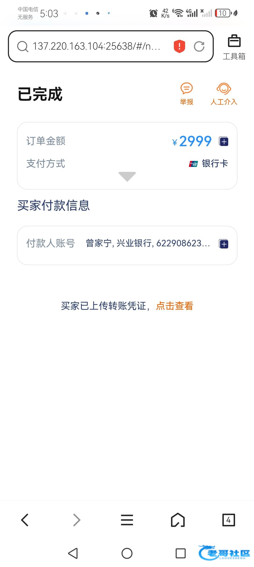 建议老哥们以后不要用钱能了,明天晚上充了300赢了1500.然后充了800打到3000提到钱能,挂单卖币,设置的最小500,最大1000.收款方式是支付宝跟QQ,挂完之后就去打加拿大,不超过3分钟,挂个奖的功夫,回去一看,有个人拍我的单子银行卡付款2999,订单已完成了,币已经放出去了,真的震惊,我都没有用银行卡收款,也没有到15分钟,直接给我放走了,支付凭证也是瞎放的,我真的想知道骗子是怎么弄出去的,还是平台搞的鬼