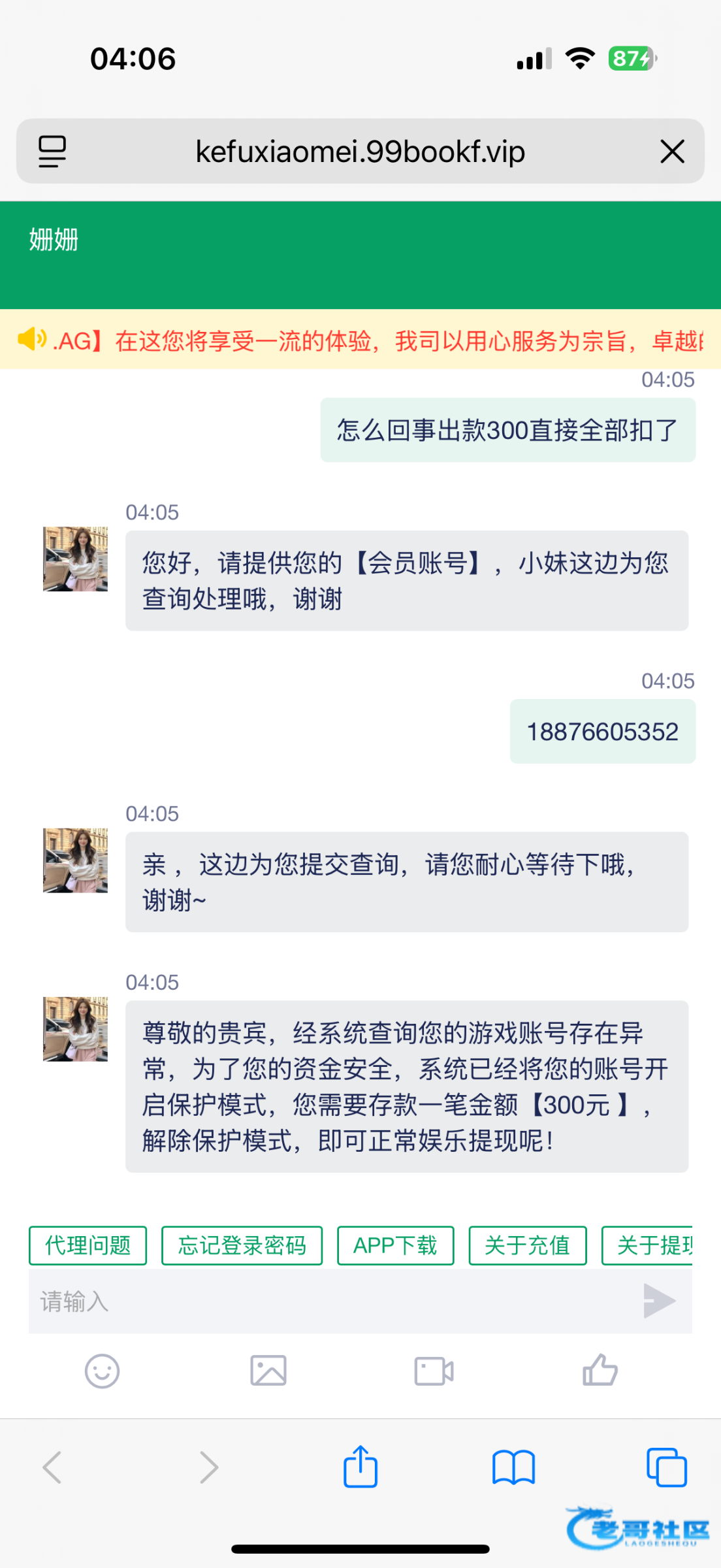 a100861100 ▶ a18587 充值玩都不给出款卡我300哪里 还要叫我继续充300,套娃的 2月前