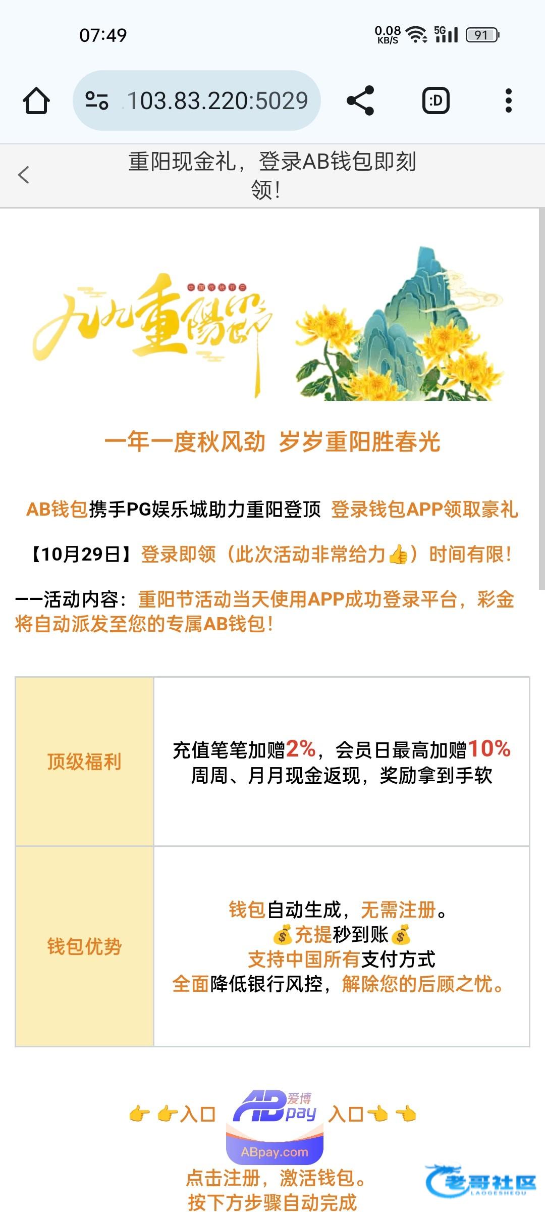 008.vip,008.com,3615.com,90.cc,5555.cc这几个台子都有重阳登录彩金,是直接派送到ab钱包里面