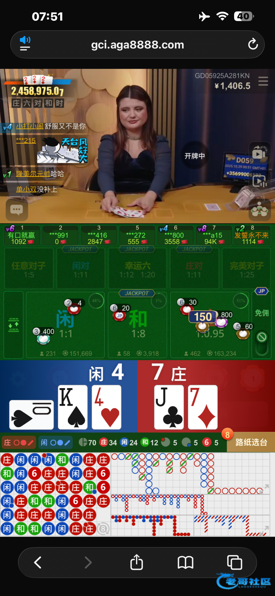 大家可以看BG 46人下注10万 AG长龙460人才16万 再怎么说AG玩的人怎么也得比BG多100倍吧 台面金额都作假那还有什么可信度 AG是人工洗牌 BG是假装人工洗牌一次 最后还要机器洗牌一次 好识别牌顺序 提前知道结果