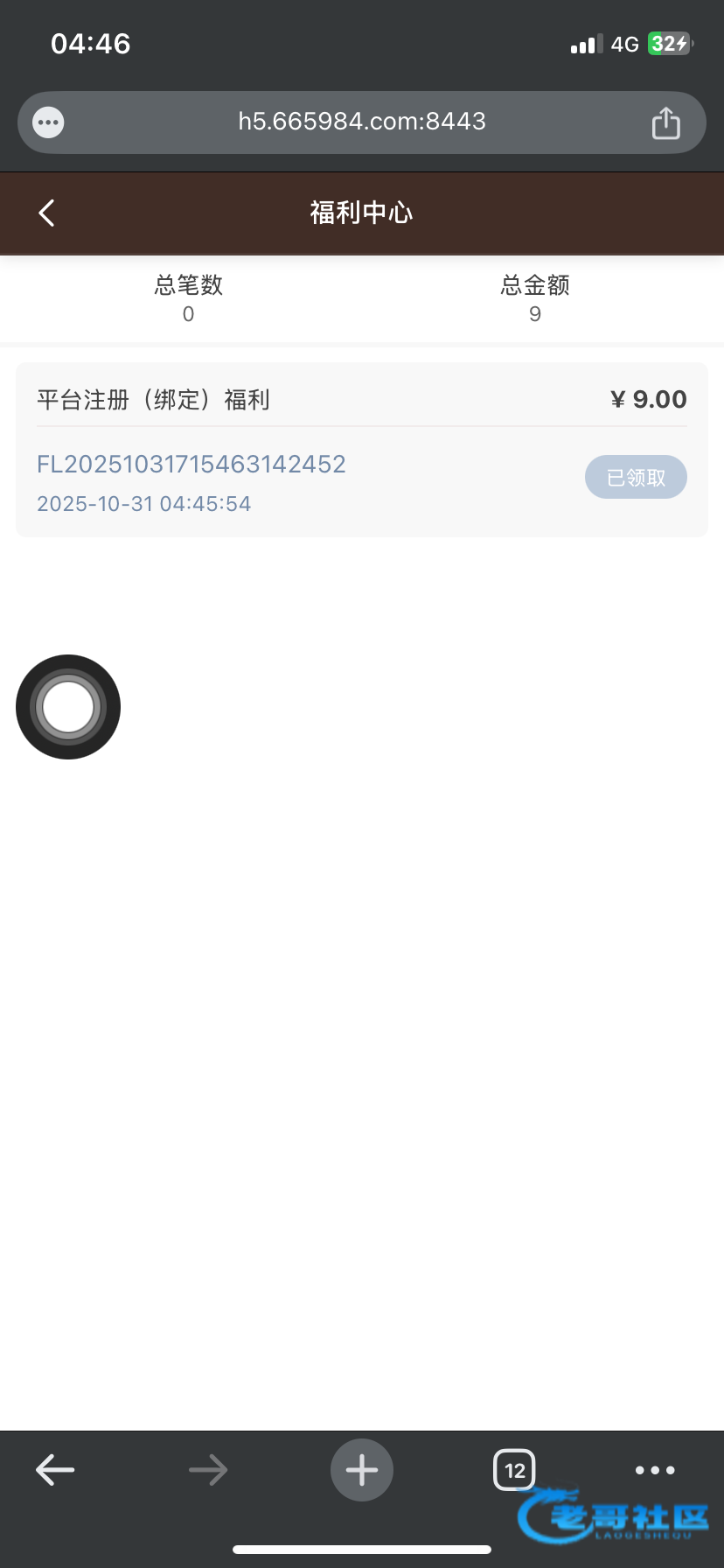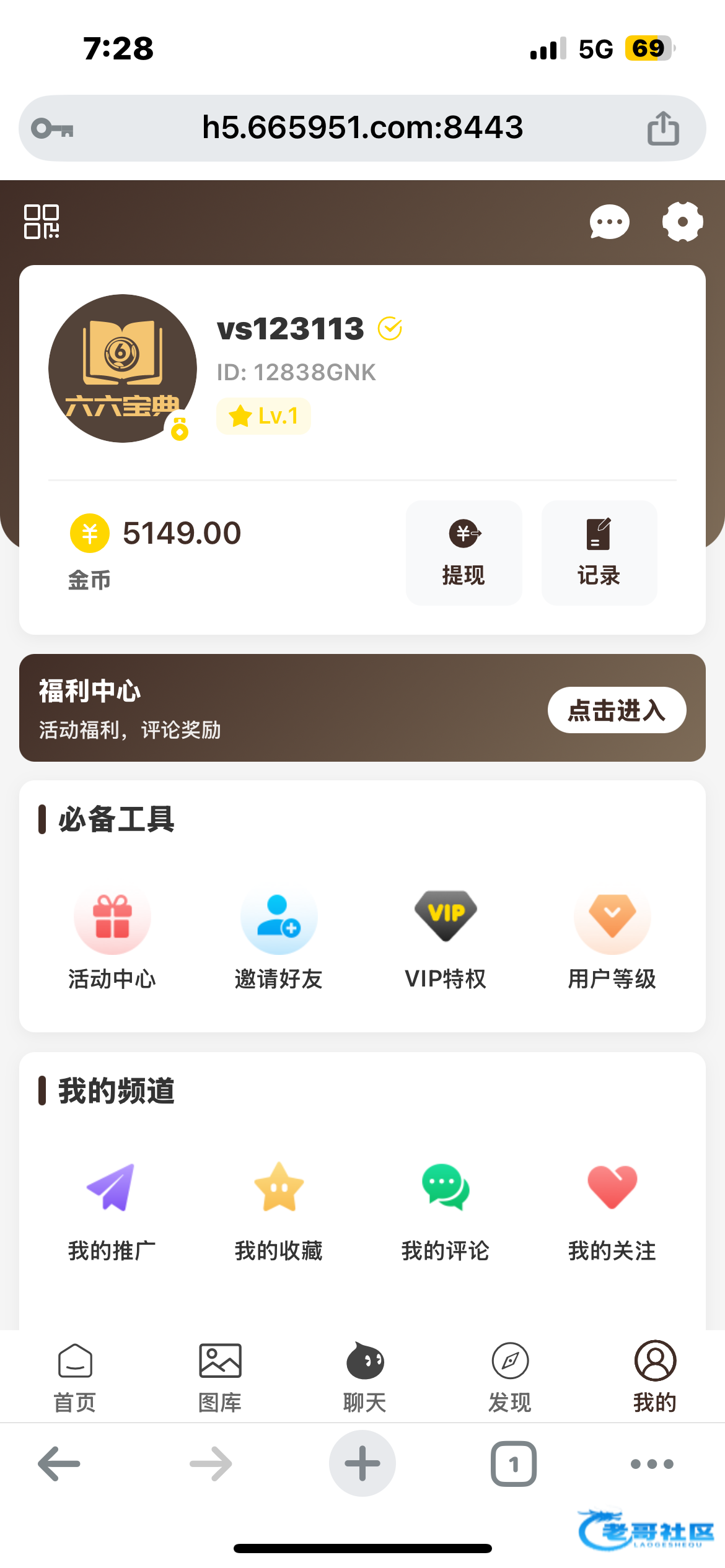 66BD.com新人注册就有 我没有打出来 打出来的老哥团一个 注册了点我的再点福利中心进去就能领取了