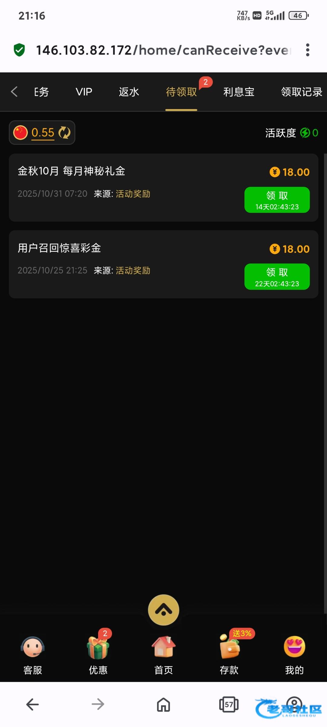 https://4545.09914566.com 我反正是鸡毛没充过,前几天送的那个特邀回归彩金18彩金白嫖过100,今天又送18。