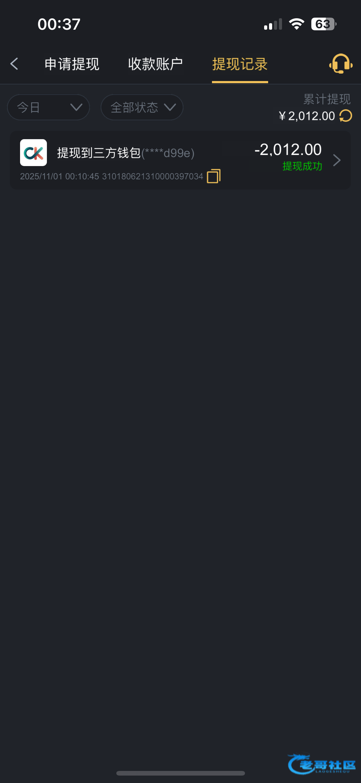 提了2600,已到账