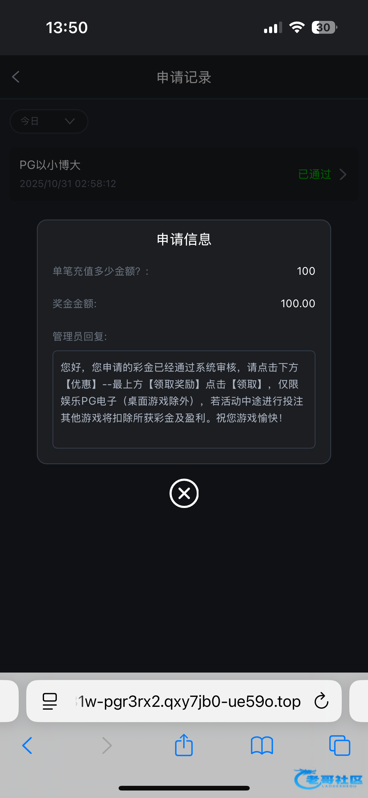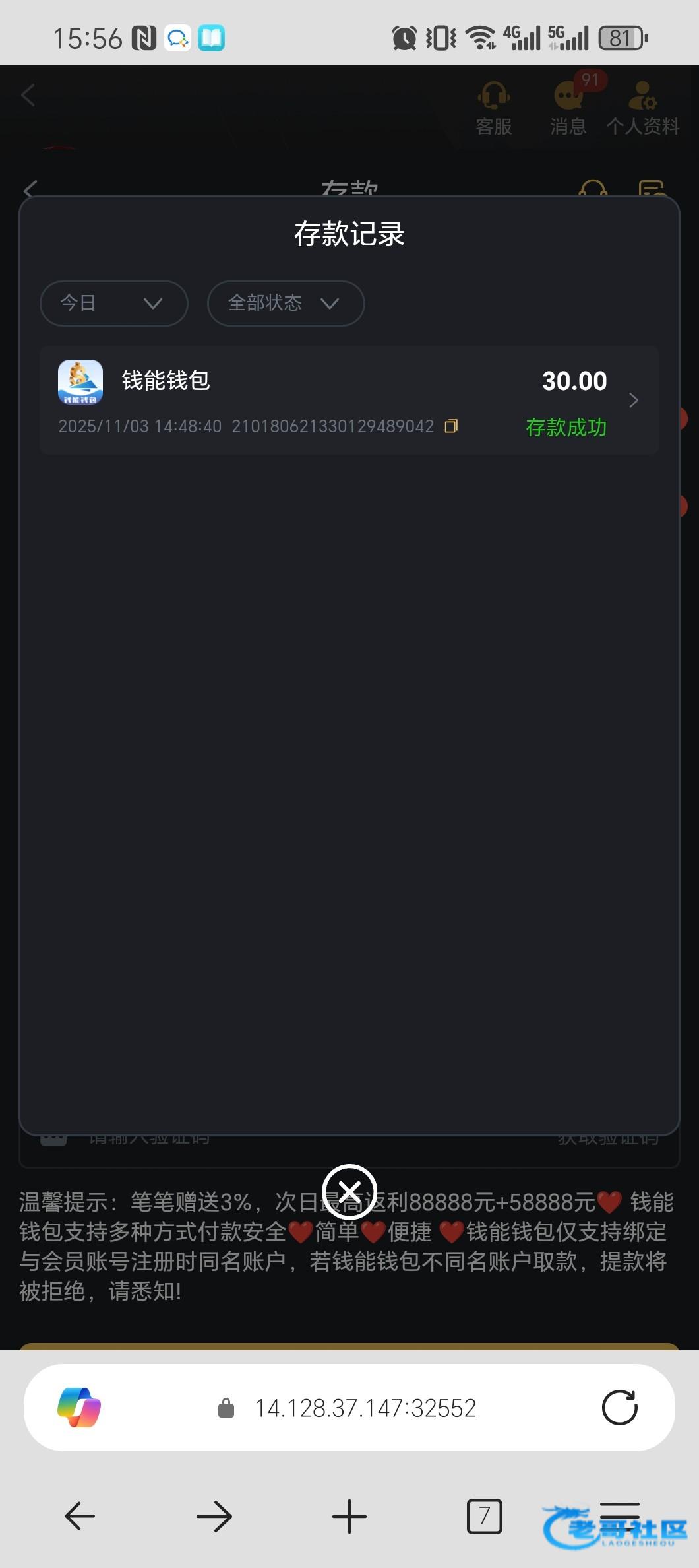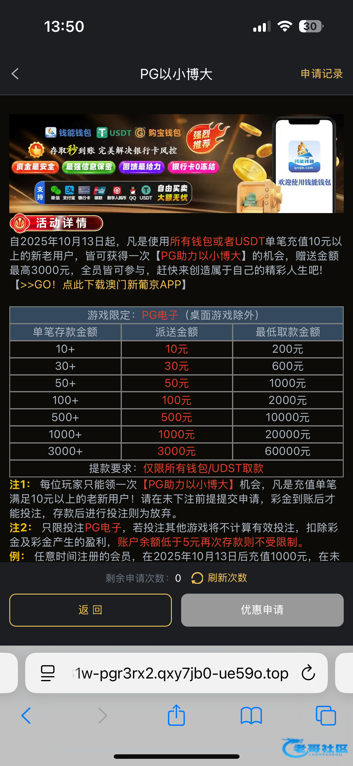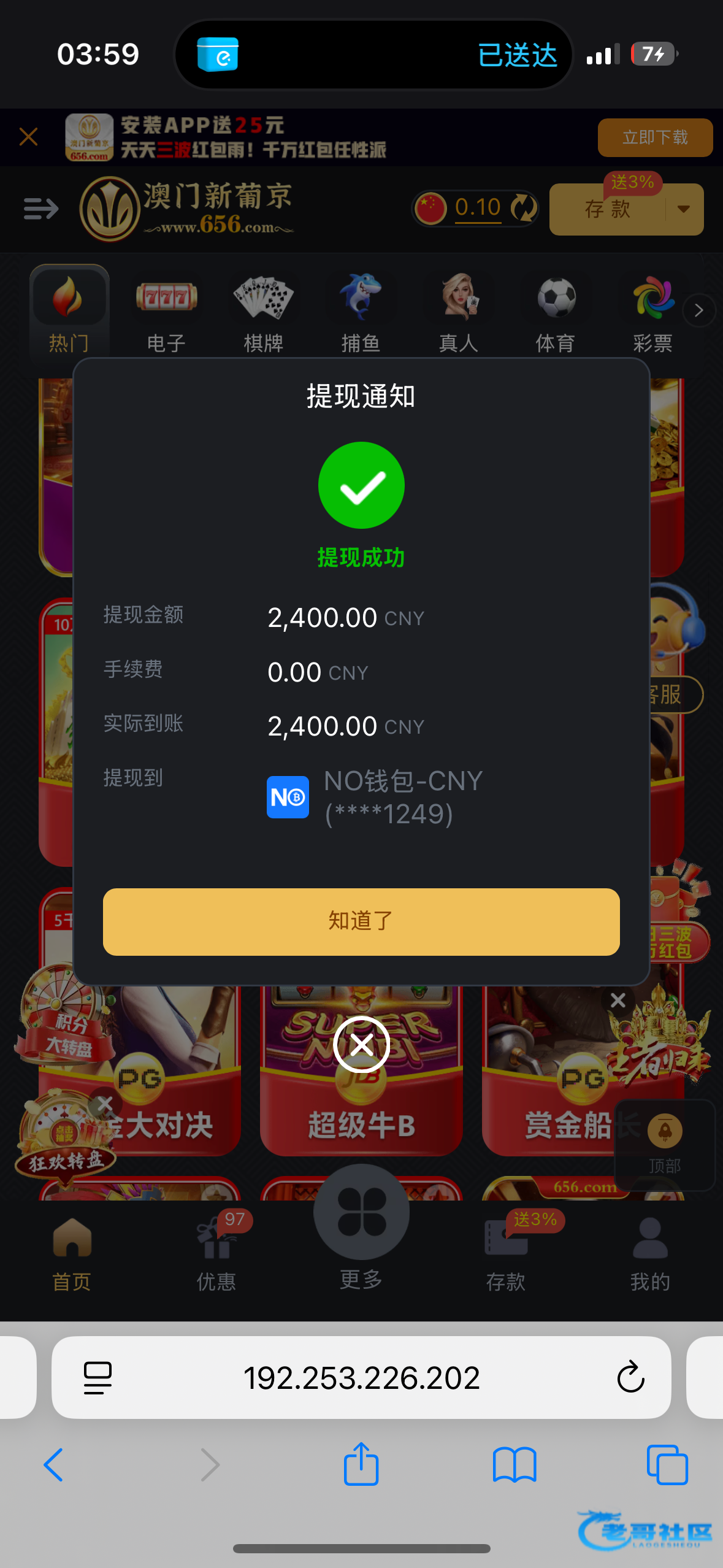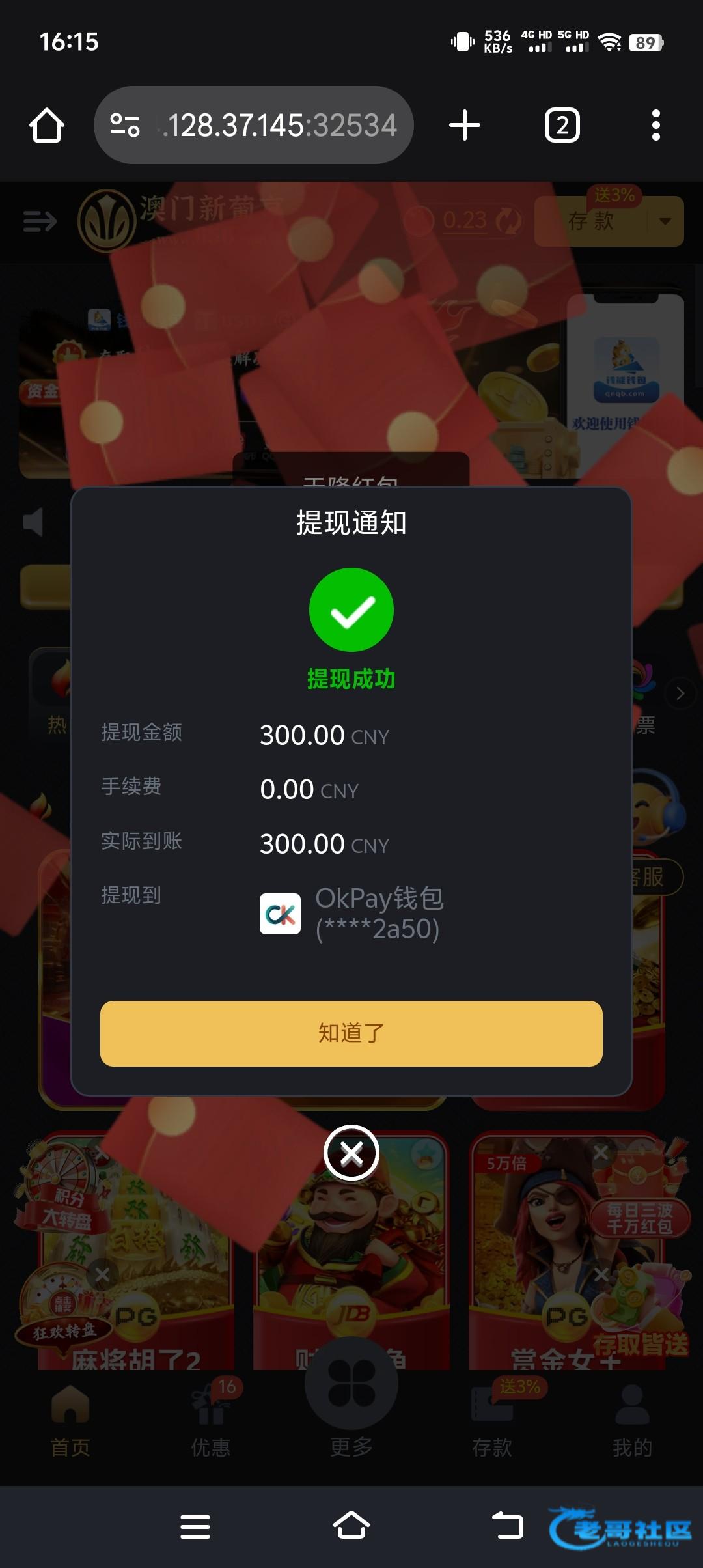 玩的30+30博大,最高打到560.然后加注就挂壁,流水打啦4000多,然后反水加乱七八糟的彩金领啦70多,提200跑路,助力有效
