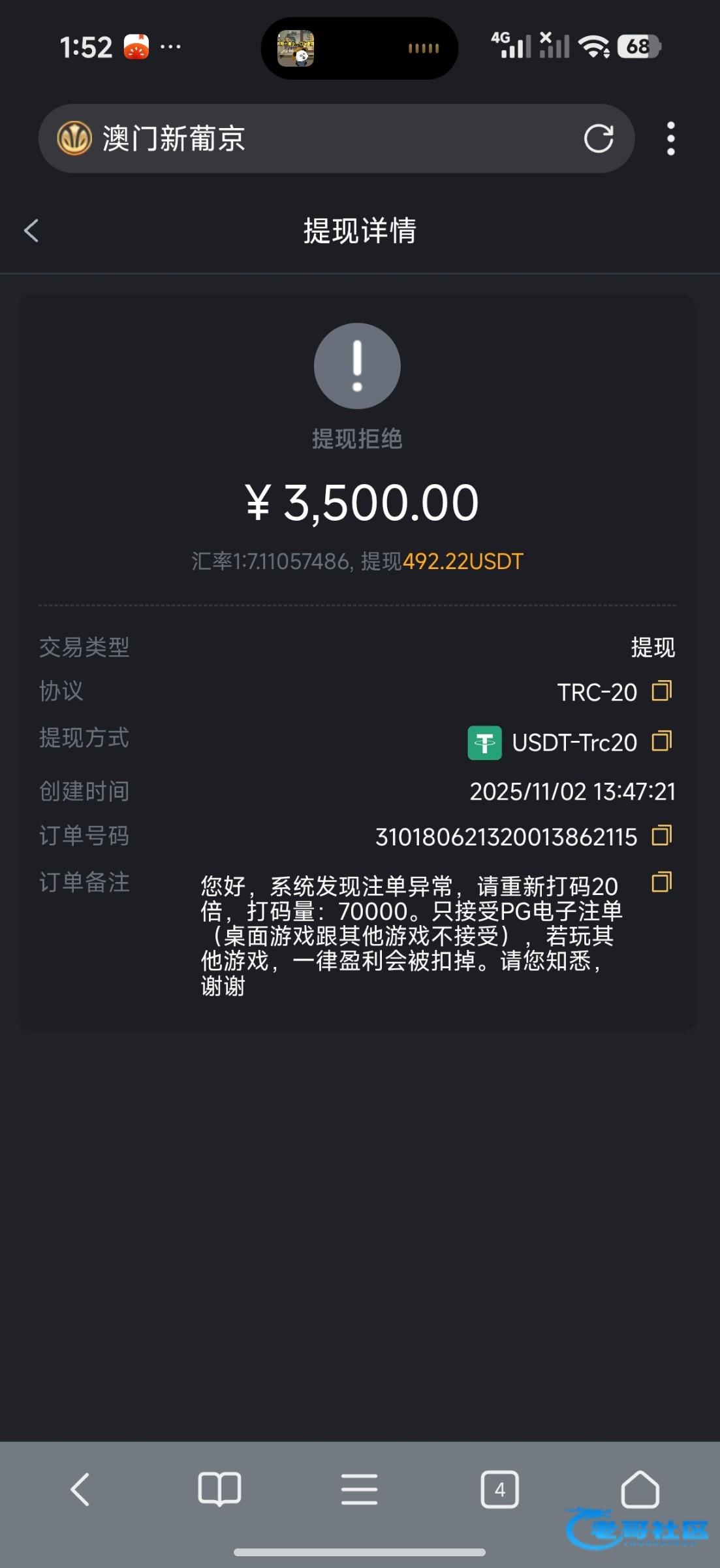 黑台,充值200没有申请任何优惠要我打5倍水才给提现,再进去打电子,杀完