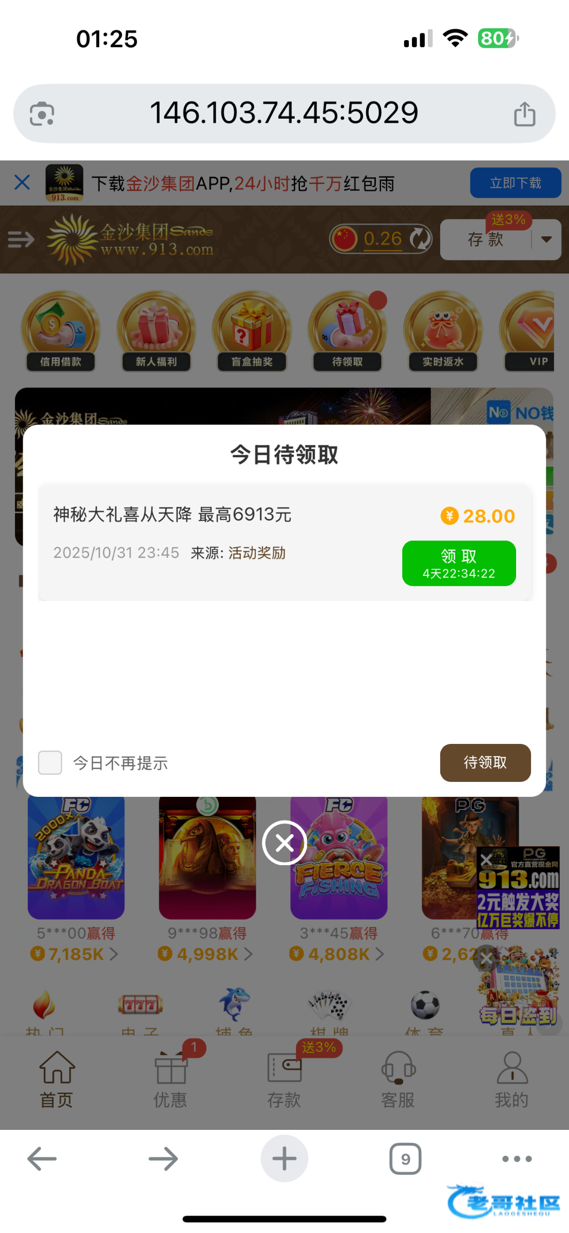 挂逼好久了 今天1号 我把账号都登入了一遍找白嫖 找到好几个 就这个最多 有号登入看看吧 913.com
