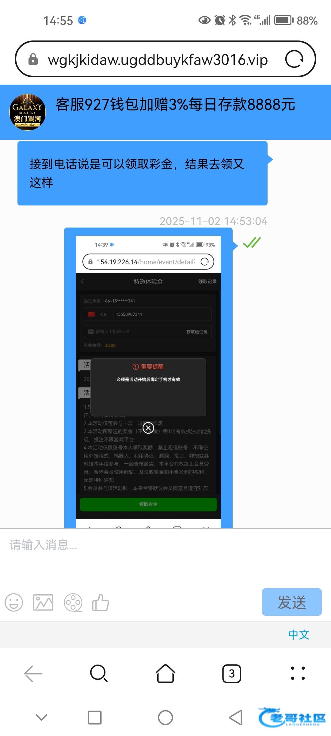 这个3016很多人都有号,有号的无视即可,没有的可以去看看我是接到机器人电话才知道的,注册的时候先账号注册然后去入口试,能收到验证码就是特邀,电话里的网址是08686.vip 官网3016.vip 自己去优惠新人里试