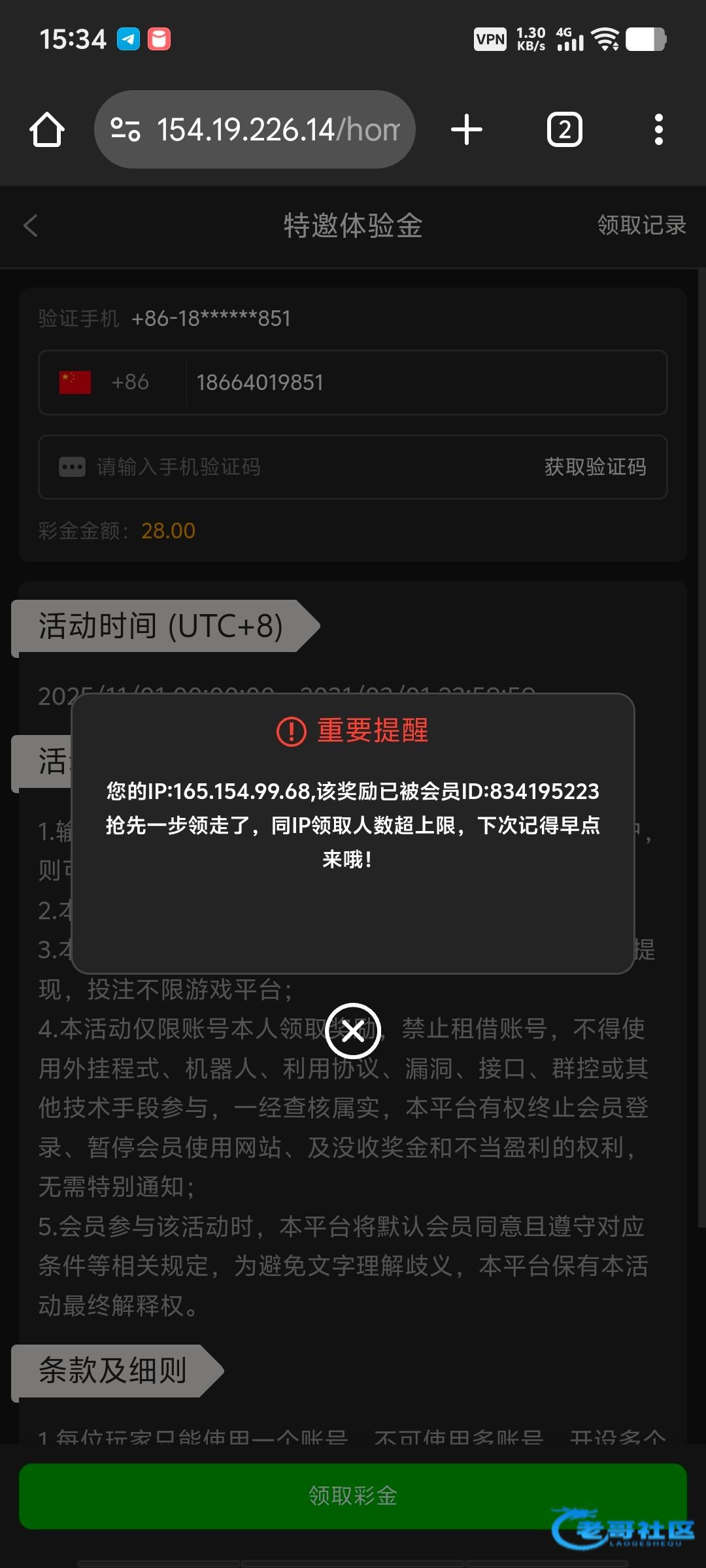 兄弟们之前注册过提示必须是活动开始后绑定的手机号才可以领的去找客服说明情况客服直接会给送,亲测领到了