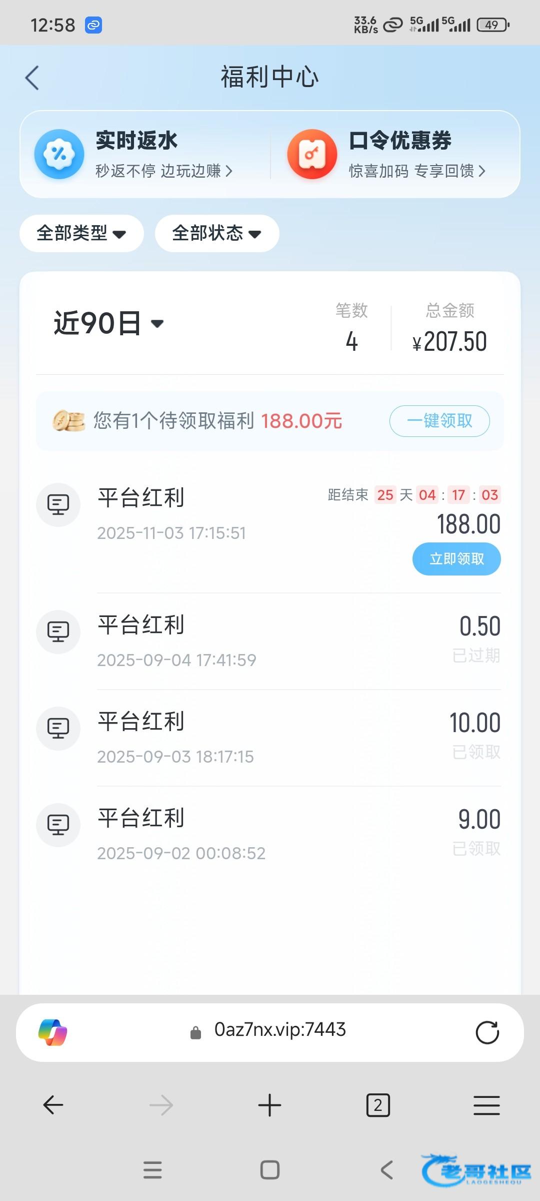 5月份的时候回归彩金出200都给我冻结了,两年的号,也充有一两千块的