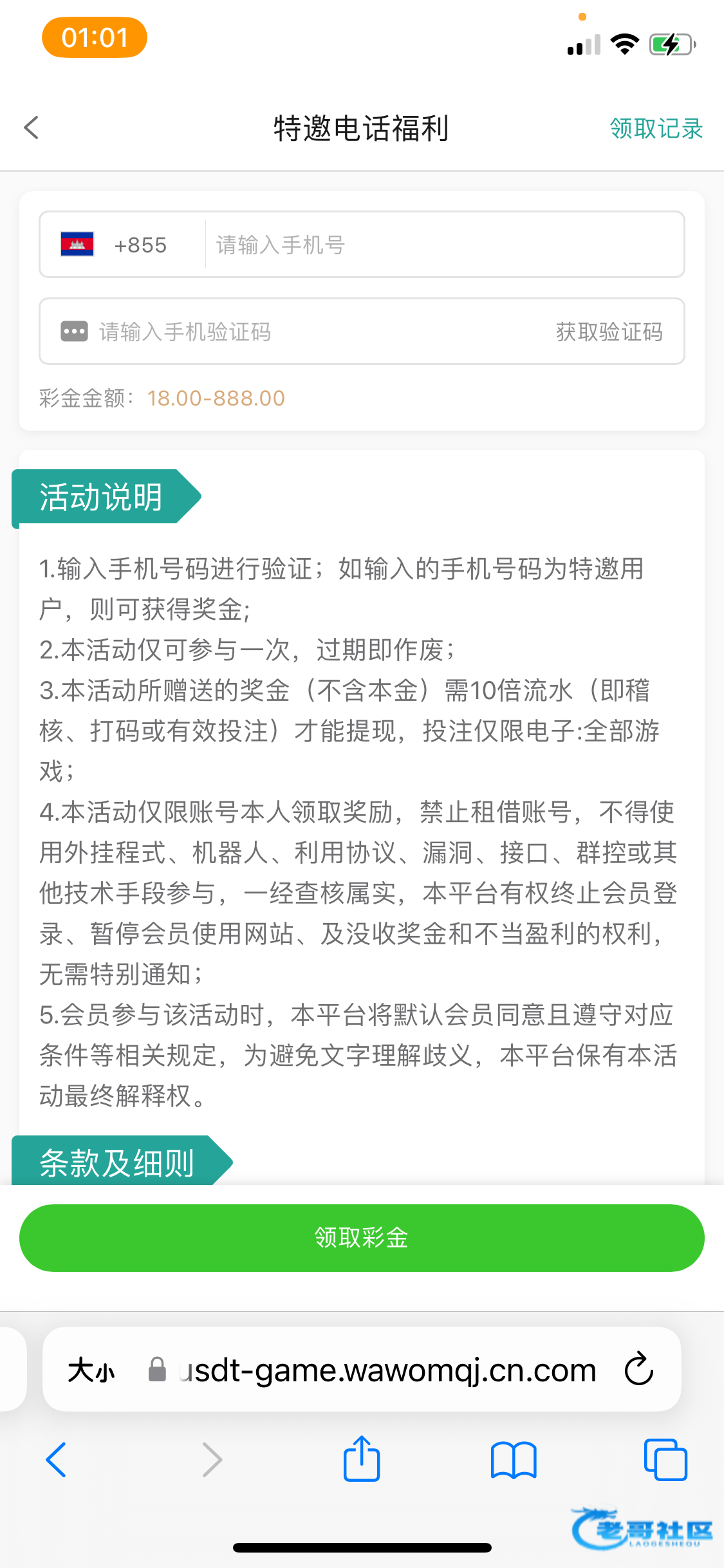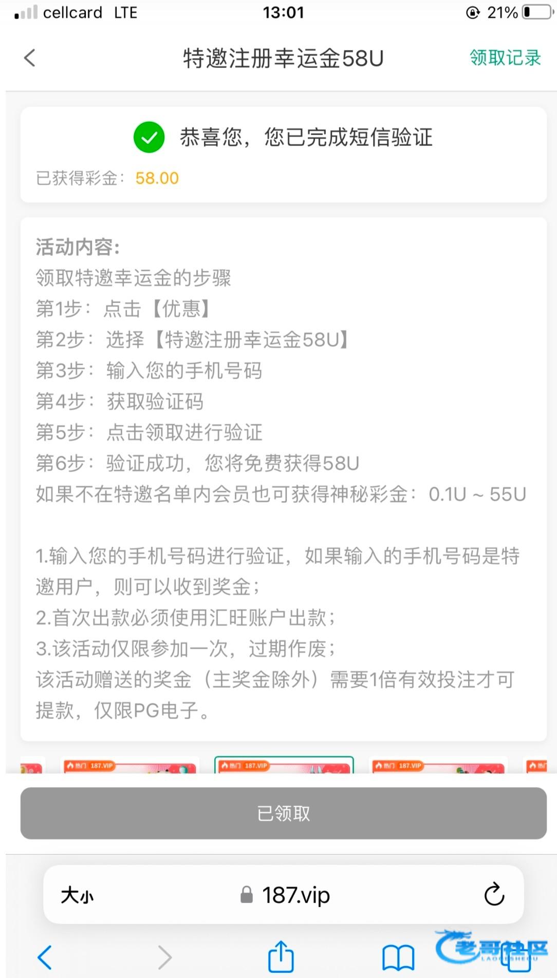 有汇旺和柬埔寨+855手机号可以去验证看一下,我没有收到短信,朋友收到告诉我的,然后我验证了一下号码领到58u,得吃500u