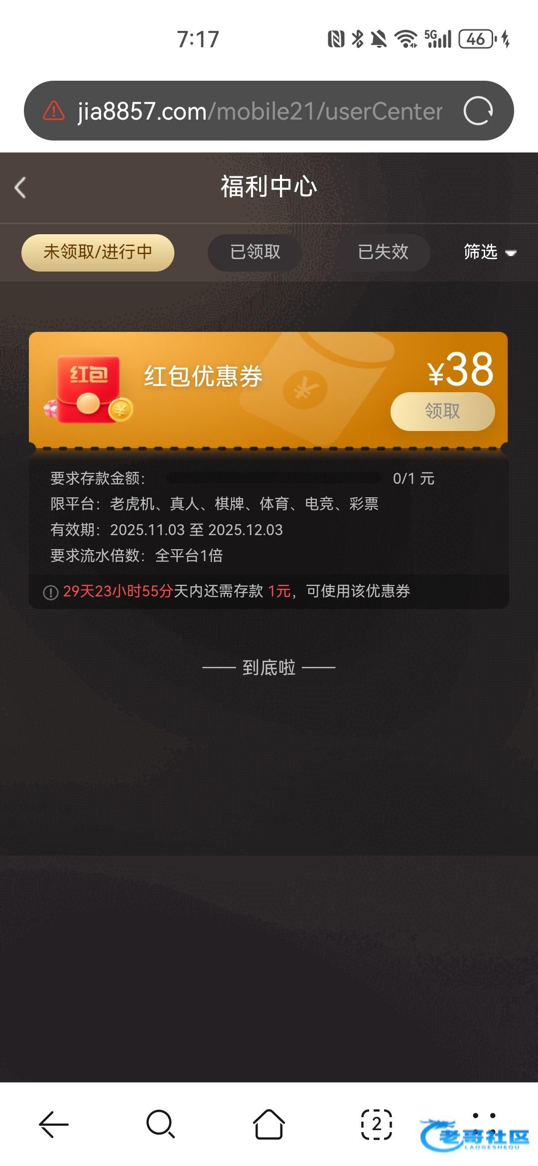 11月1日后的新用户注册送28彩金,出款自测,好像还有个存1送38优惠券,我注册自动到号上了网址https://jia8857.com