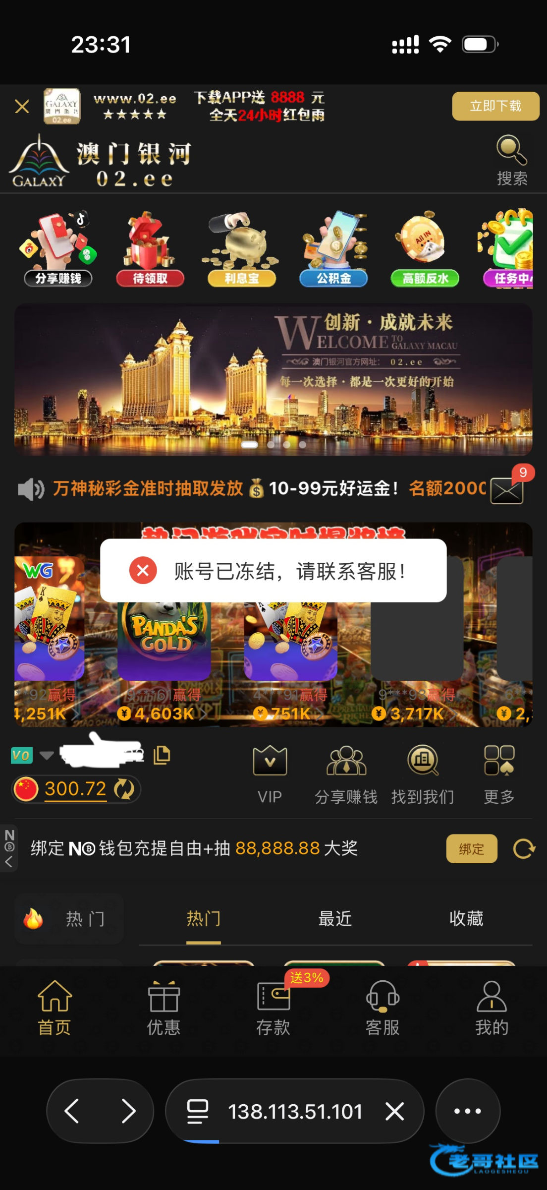 这几个台子前几天套18彩金,no钱包可以充10,出来800,