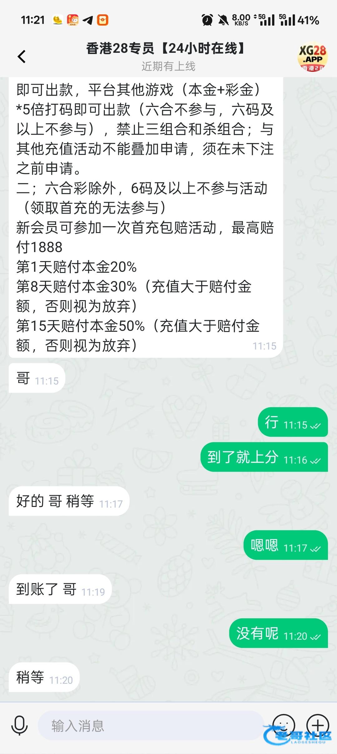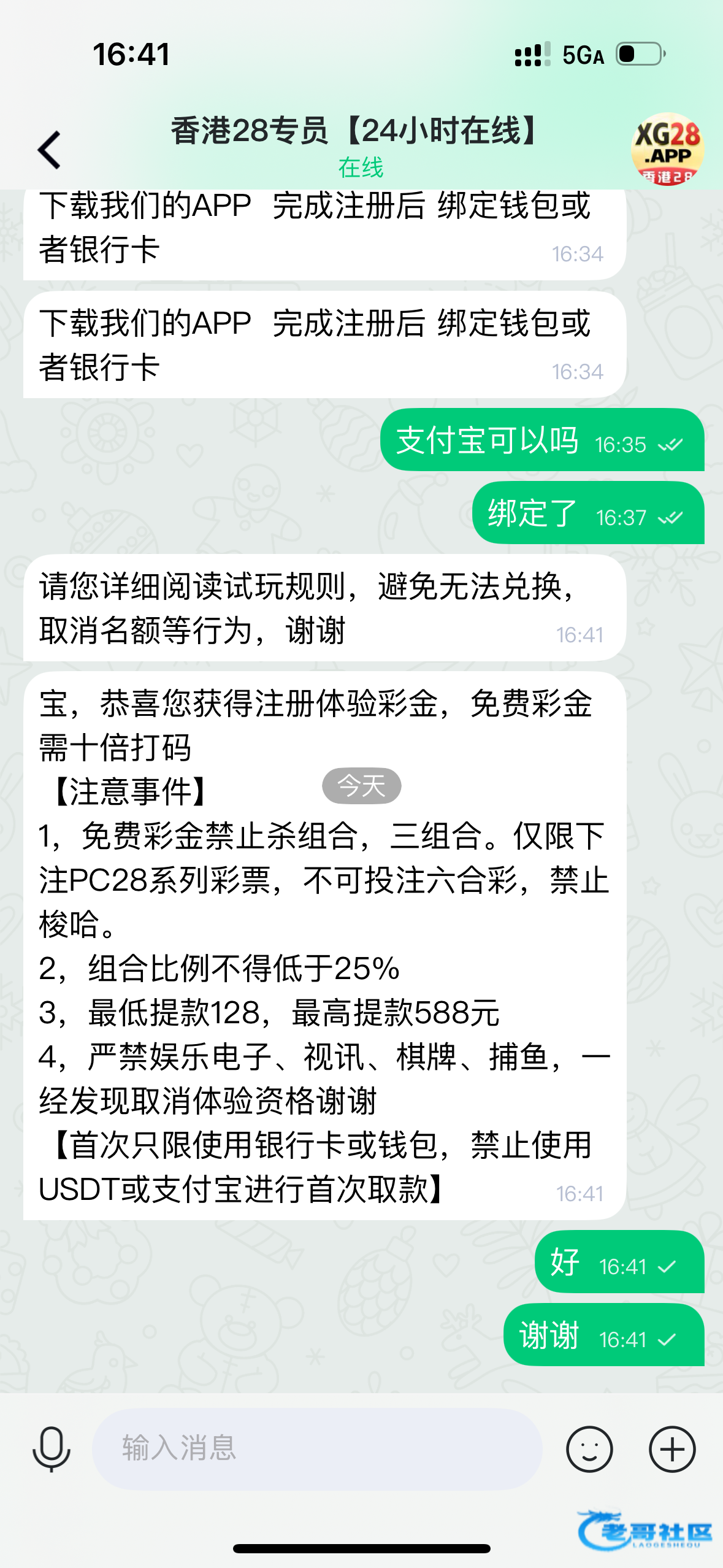 牛的 半个月前注册的,问我哪看到的,我直接把老哥网截图发过去,不肯送,今天又看到,我说咱都认识那么久了,送一个吧,真给我送了58,提了100,说是最低128,第一次不能支付宝和u,我直接支付宝提了100也给出了