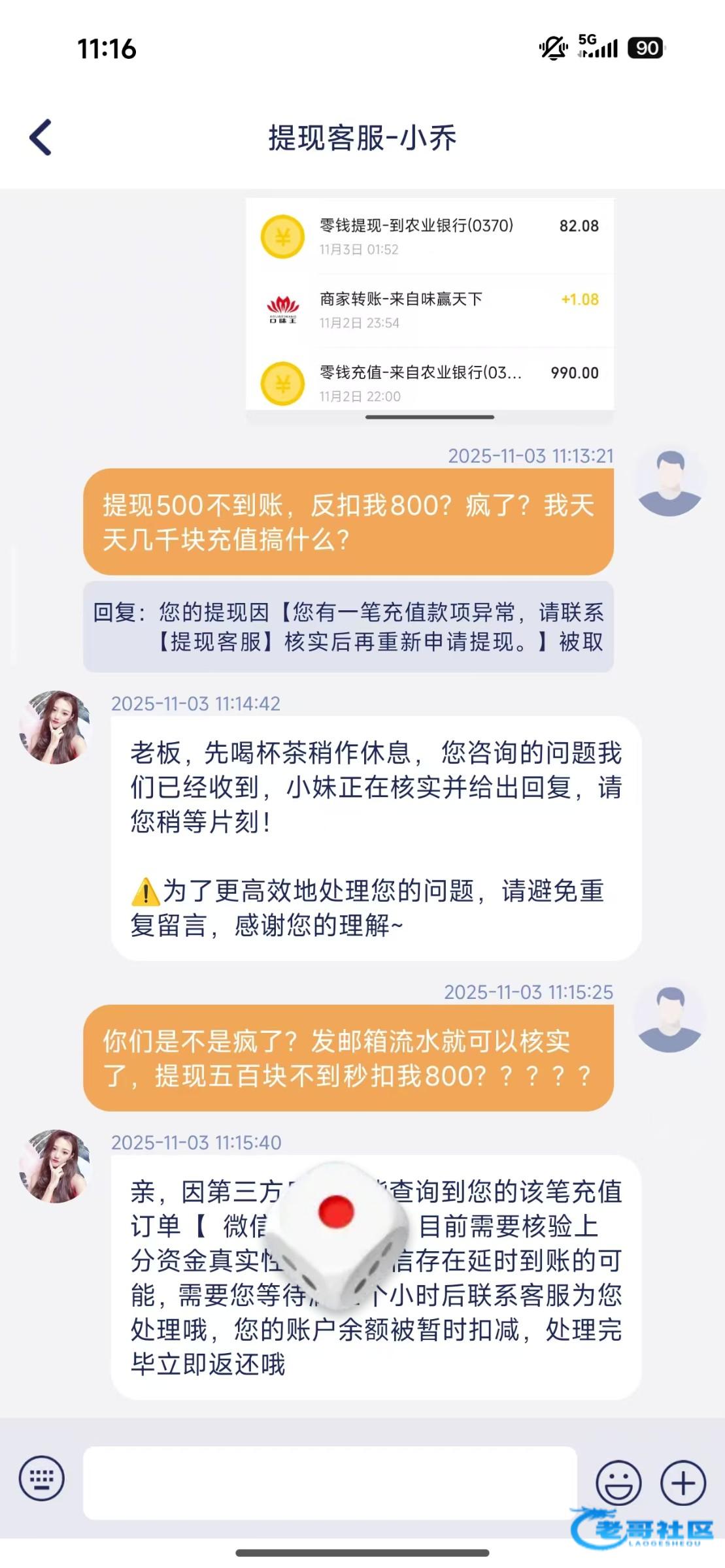 每个月都进去几万,今天实在打不动,提500,剩300,说第三方没收到钱,我联系收款人 收款人说收到了 这是什么操作?有经历过的老哥吗?