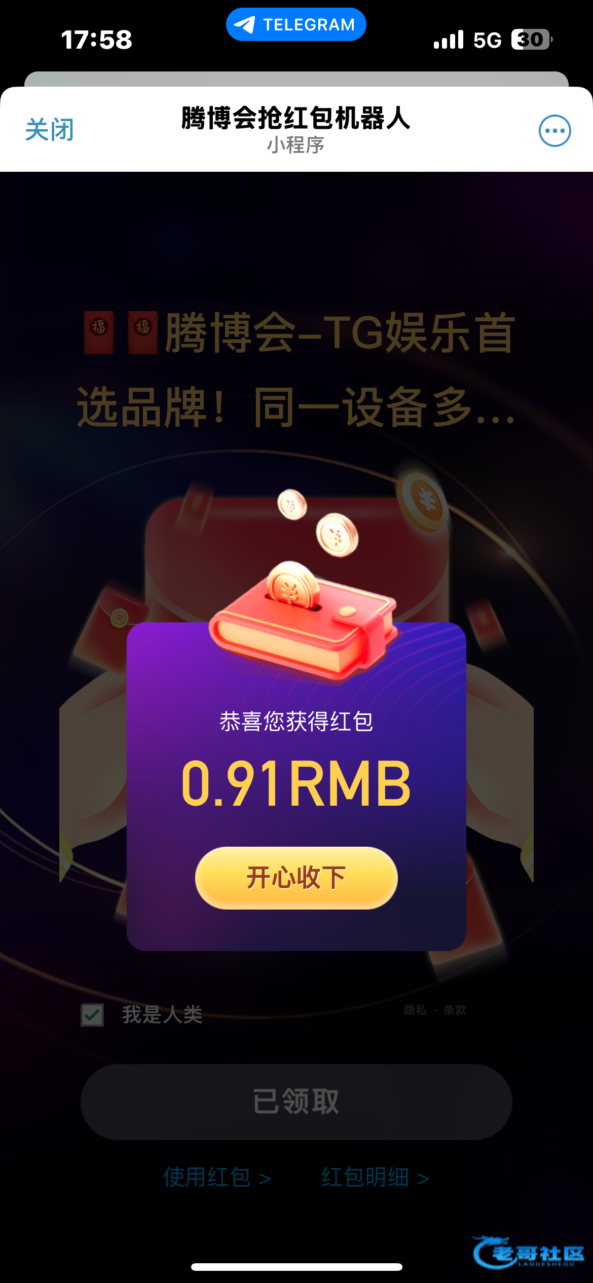给我擦皮鞋 ▶ liqian88 你错了,这个真得天天发,因为每个发红包的群都不一样,不进群就领不了,没人发怎么知道 2月前